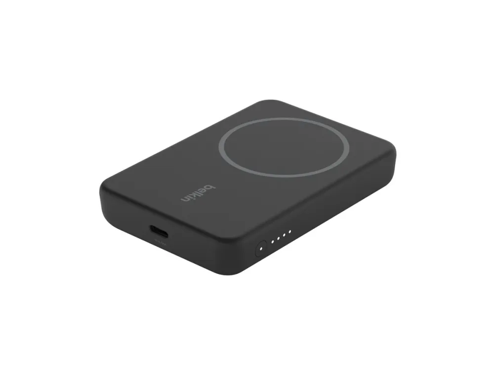 This portable Magnetic Wireless Power Bank 5K + Stand delivers a safe 7.5 W of wireless charging power to your device without cables or a need to connect to a power source. The fold-out stand offers a convenient and hands-free way to stream or video call while you charge.