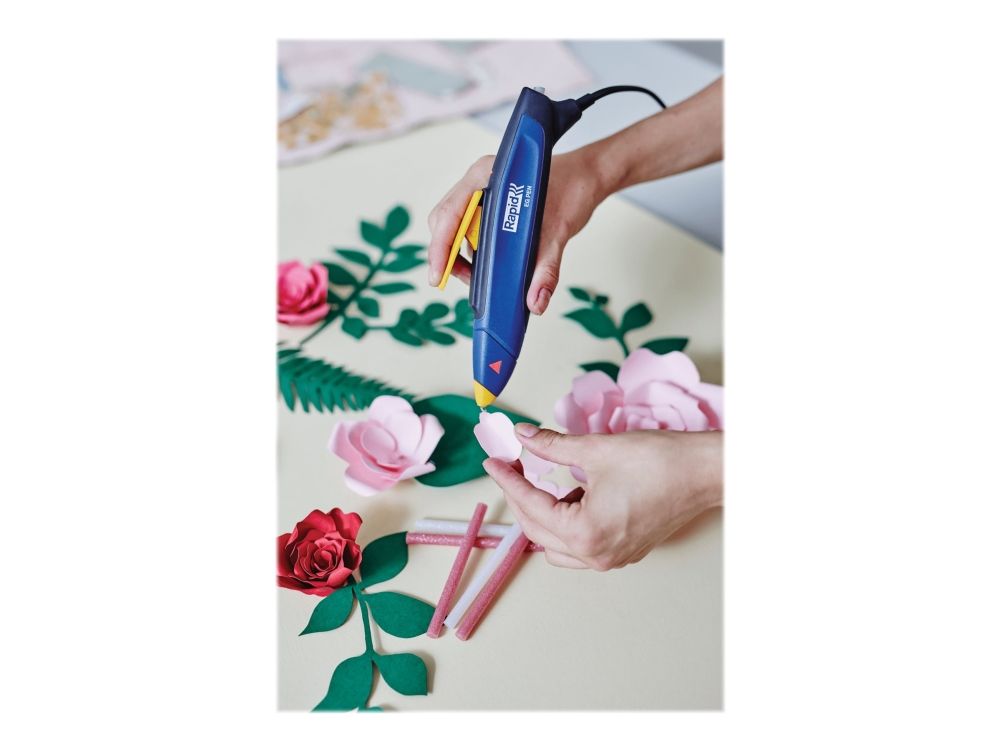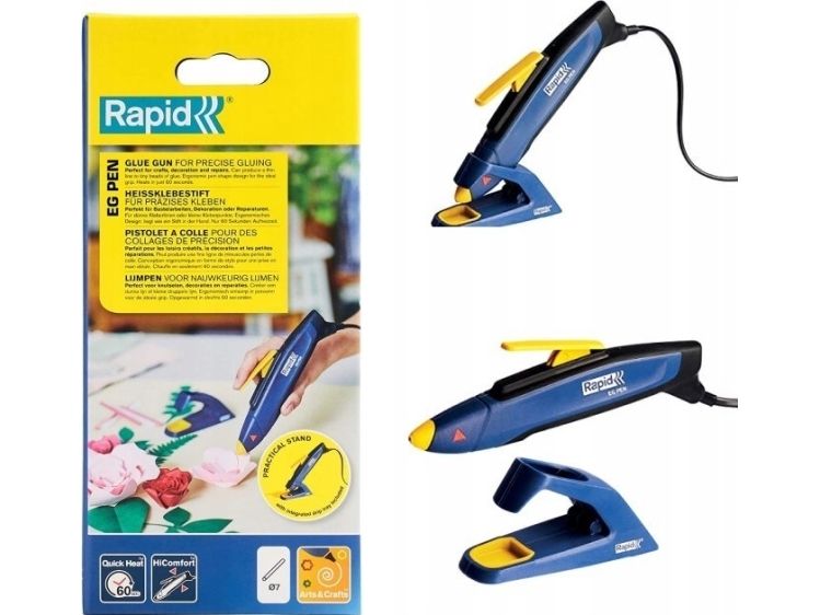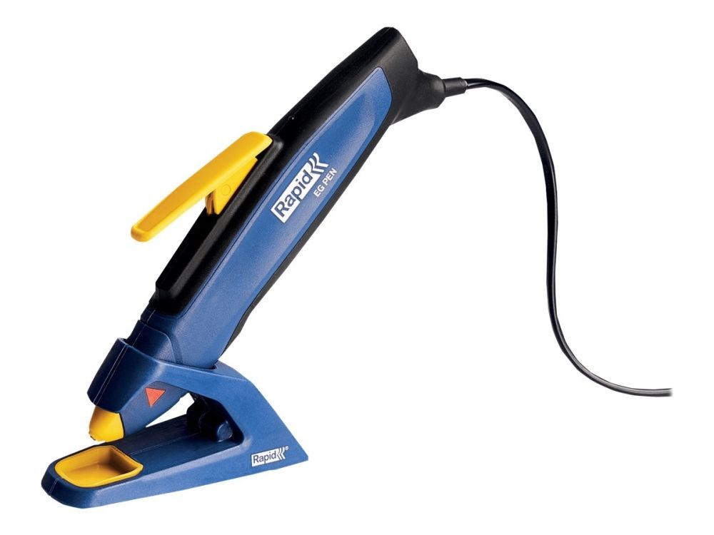 Discover the Rapid EG Pen, a hot melt glue gun designed for both hobbyists and professionals. This tool combines power with precision, featuring a 7 mm consumable size that allows for fine, detailed work. The pen-shaped design ensures an ergonomic grip, enhancing control for intricate projects. With an 80 W power output, the EG Pen delivers consistent performance, complemented by a self-regulated temperature system that keeps the glue at the ideal flow temperature. A quick warm-up time of just 1 minute means you can start your projects without delay, and the built-in power indicator helps monitor the device's status. For added convenience, the 2 m cable offers extensive reach, making it easier to work on larger projects or in spaces where outlets are scarce. Whether you're crafting, fixing, or creating, the EG Pen from Rapid is your go-to tool for reliable, precise glue application.