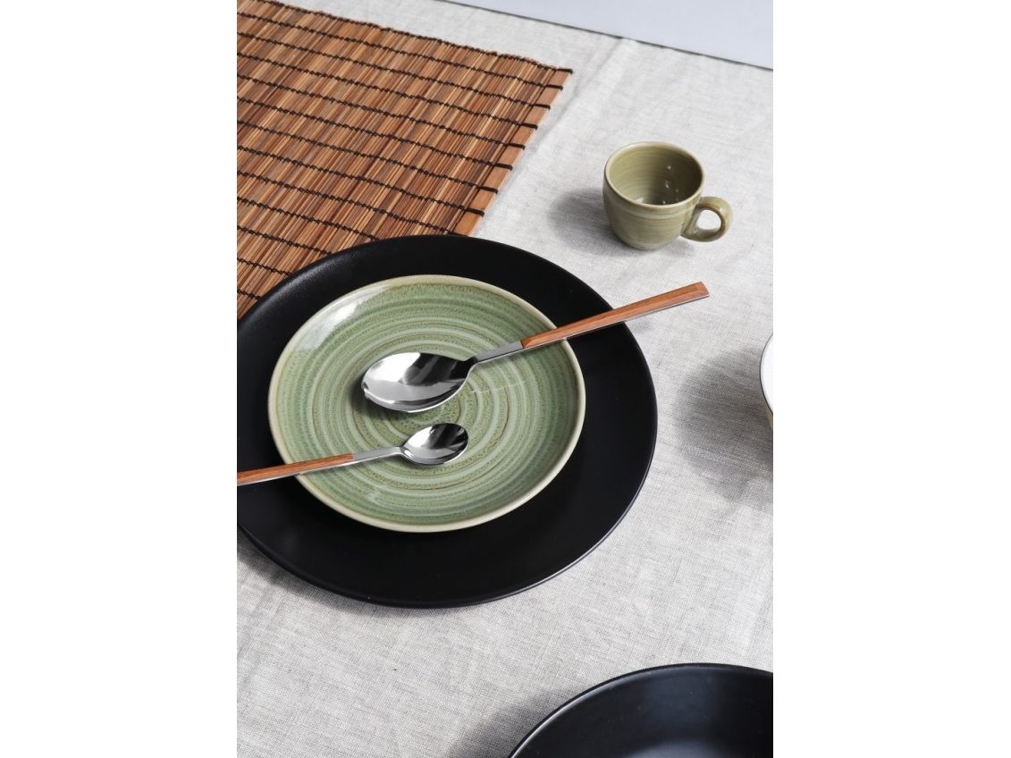 Komplett set med bestick för 6 personer. Setet med 24 delar innehåller en sked, gaffel, kniv och kaffesked. Besticken har en minimalistisk och elegant design och handtag med träeffekt. Besticken är i rostfritt stål med handtag i ABS.