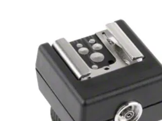 The sync hot shoe with an X contact and TTL function for Nikon cameras by walimex is particularly convenient for remote flashing, especially with two flashes or for studio work with cameras that do not have an X contact. Via the hot shoe you can connect a sync cable to your camera, also when it does not have an X contact, even if you want to keep the compact flash attached to your camera. The hot shoe has TTL contacts and transfers the camera's data to the compact flash. That way you can use all the advantages of TTL measuring and trigger a second flash at the same time.