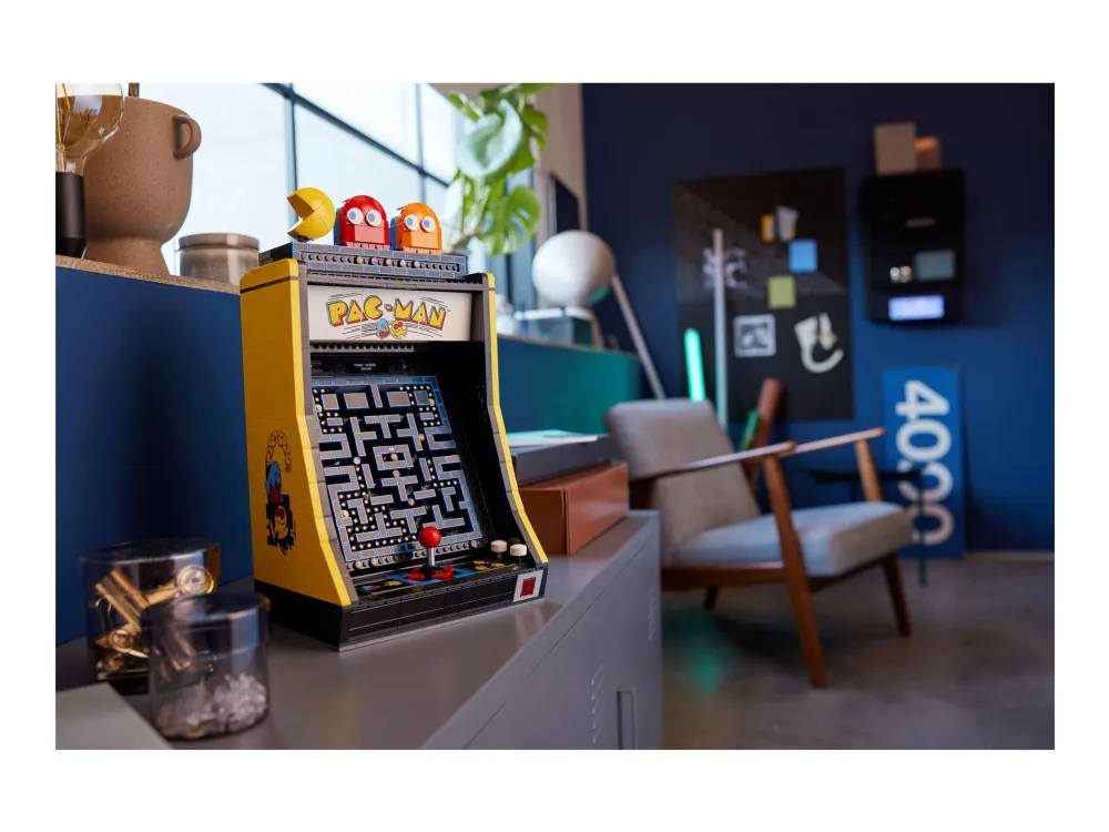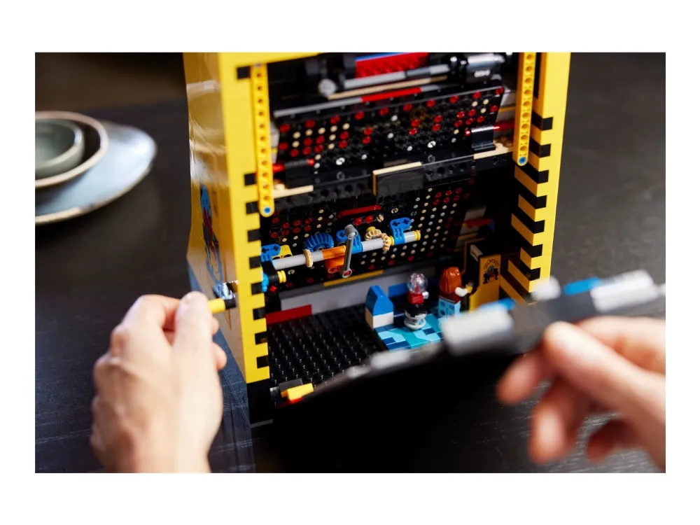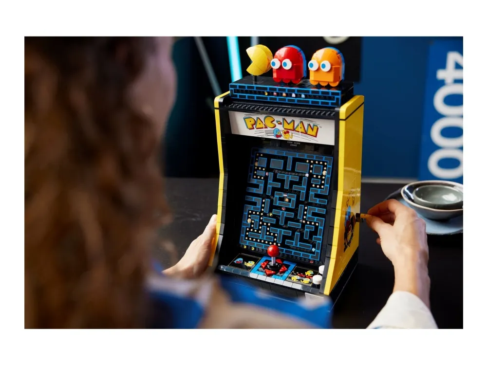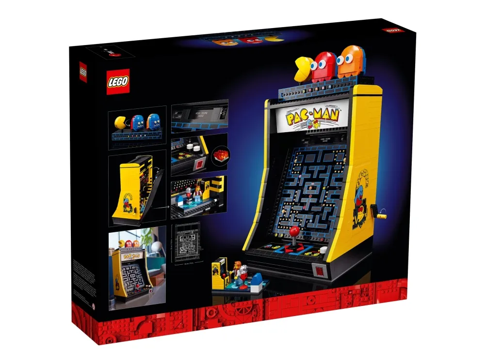 Denna LEGO version är fullpackad med retrodetaljer och roliga funktioner, som en 4-vägs-joystick och ett upplyst myntinkast. Vrid handtaget för att aktivera en mekanisk labyrint som i den klassiska jakten mellan dina favoritkaraktärer, eller öppna bakpanelen för att se de mekaniska delarna. Det finns till och med en arkadscen från 1980-talet att bygga, komplett med en spelarminifigur och ett visningsställ med roterbara figurer av PAC-MAN, BLINKY och CLYDE.