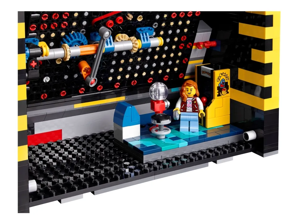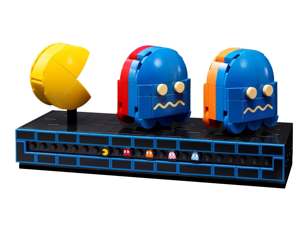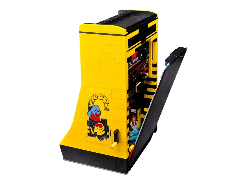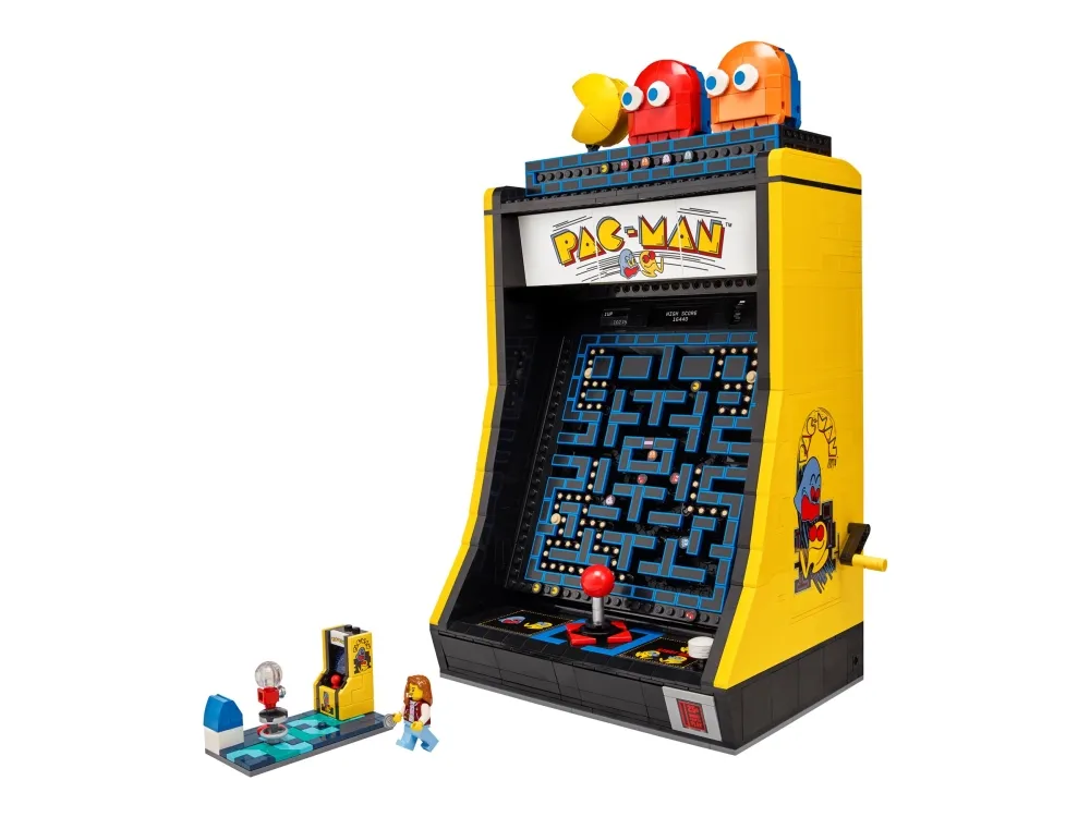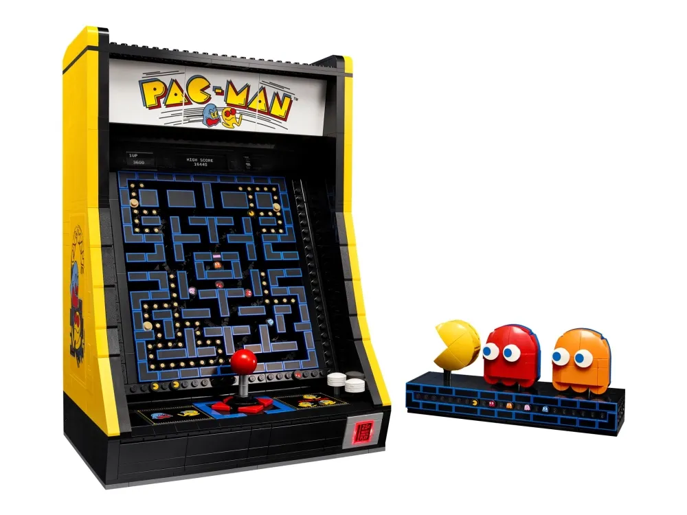 Denna LEGO version är fullpackad med retrodetaljer och roliga funktioner, som en 4-vägs-joystick och ett upplyst myntinkast. Vrid handtaget för att aktivera en mekanisk labyrint som i den klassiska jakten mellan dina favoritkaraktärer, eller öppna bakpanelen för att se de mekaniska delarna. Det finns till och med en arkadscen från 1980-talet att bygga, komplett med en spelarminifigur och ett visningsställ med roterbara figurer av PAC-MAN, BLINKY och CLYDE.