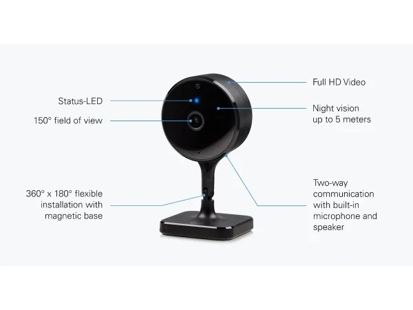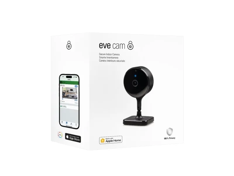 Eve Cam är en nätverksövervakningskamera som är utformad för att erbjuda säkerhet och bekvämlighet i ditt hem. Med sin 1080p digitala videoupplösning och expansiva 150° synfält täcks varje hörn av ditt rum i högupplöst klarhet. Kamerans säkerhetsfunktioner, inklusive End-to-End Encryption, Face Recognition och Motion Detection, säkerställer att ditt hem är skyddat och skiljer mellan människor, husdjur och fordon för att endast ge relevanta varningar.