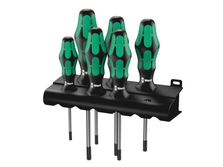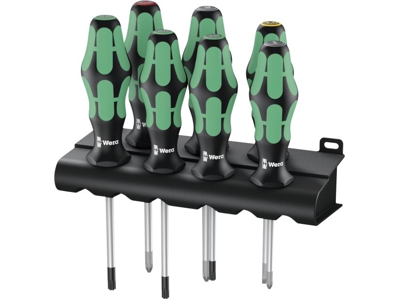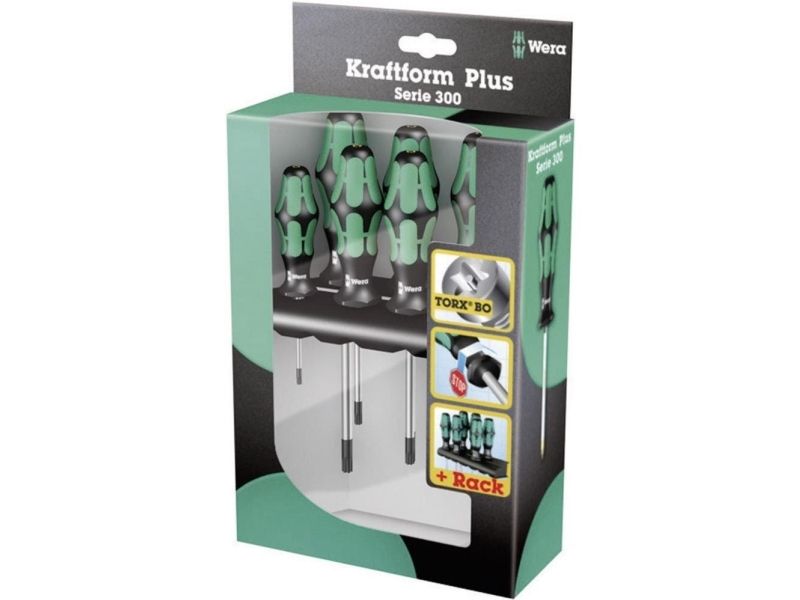 6-piece screwdriver set with Kraftform handle for pleasant, ergonomic working that prevents blisters and calluses. TORX® BO screws have a