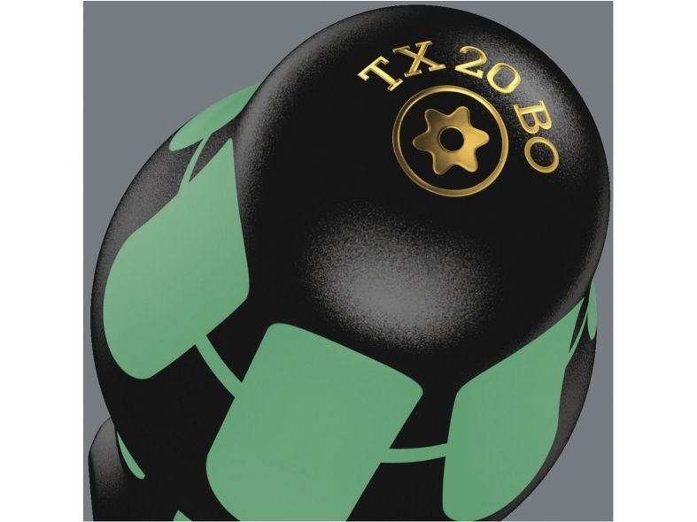TORX® BO tools have a bore hole which can slip over the pin. The Wera Black Point tip and a complex hardening process ensure a long service life