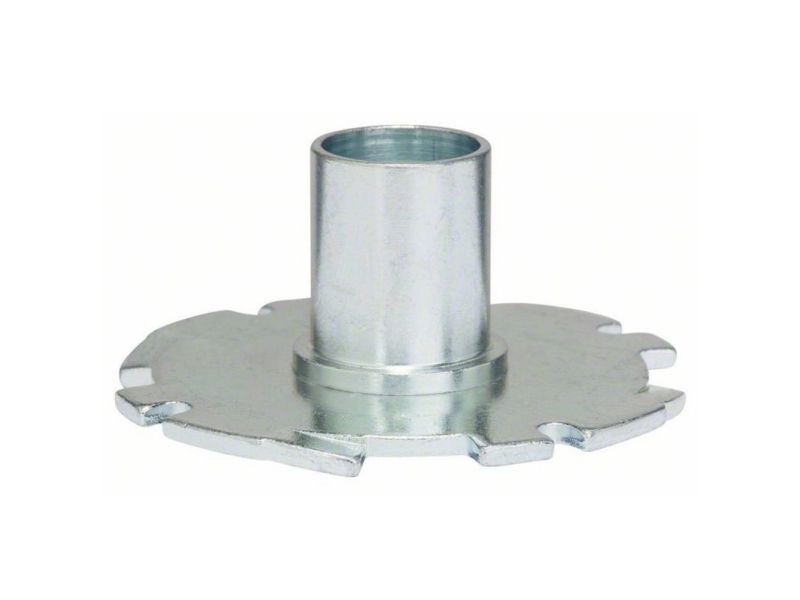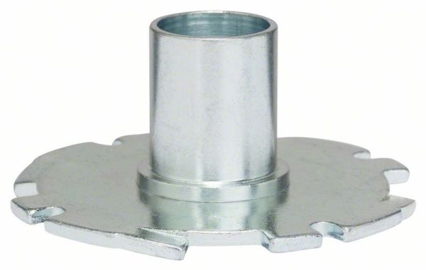 The Template Guide for routers runs along templates transferring shapes onto the workpiece. It is indispensable when working with templates and offers a quick-fastening Bayonet lock for rapid tool-free changing. The distance between the guide and the router bit must be taken into consideration when making a template for use with a template guide. This distance is calculated with the following formula: diameter of template guide (K) – diameter of router bit (F))/2.