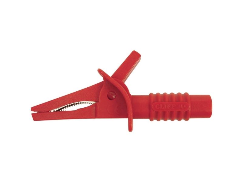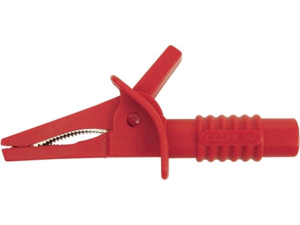 Cliff CRC/01 säkerhetskrokodilklämma, 4 mm kontakt, CAT II 1000 V, CAT III 600 V, röd
