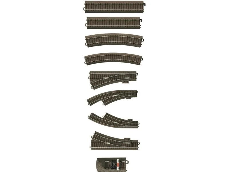 startpaket kan utökas med spårförlängningsuppsättningen - Kan användas för parallella spårförbindelser, övergångs- eller växelspår, ett depåspår och nya linjer - Lämplig för Trix startpaket samt för befintliga anläggningar - Kan utökas med hela Trix C-spårprogram.