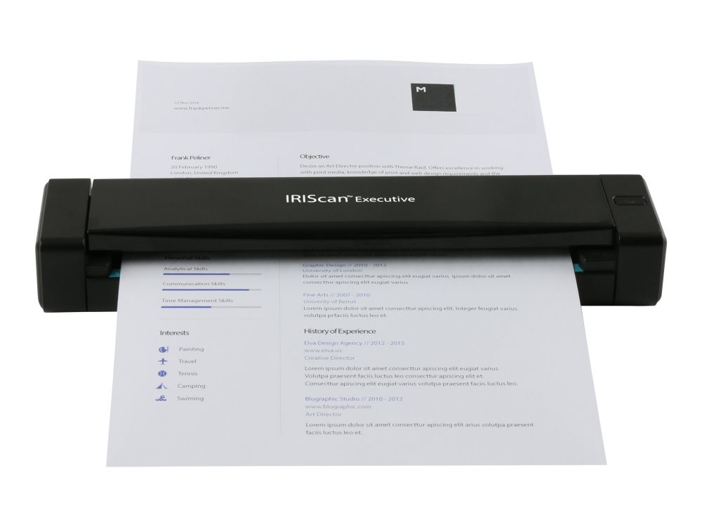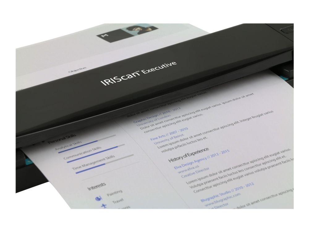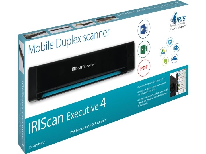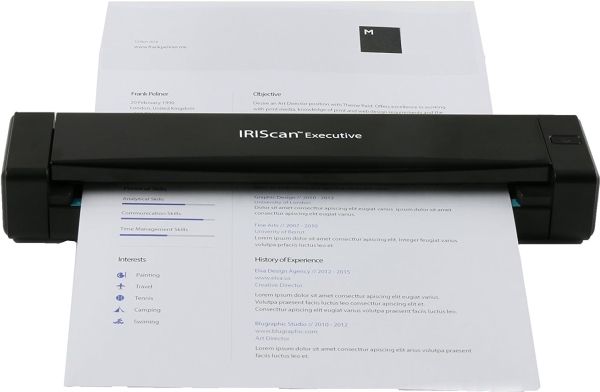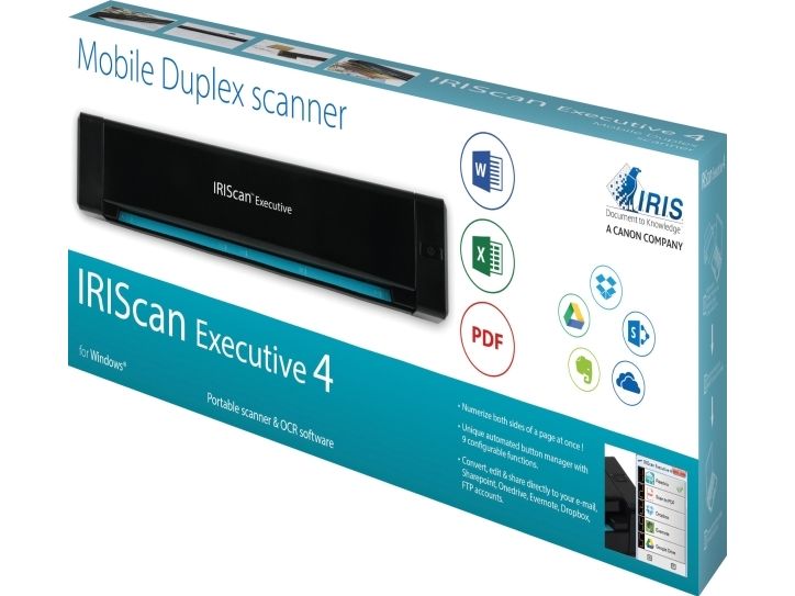 IRIScan Executive 4 is not only an extremely light and compact portable scanner. It's an uncompromising vision of portable scanning, made to fit the constraints of today's mobile world. Using IRIScan Executive 4 will bring you the power of a traditional desktop scanner without the clutter.
