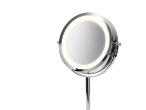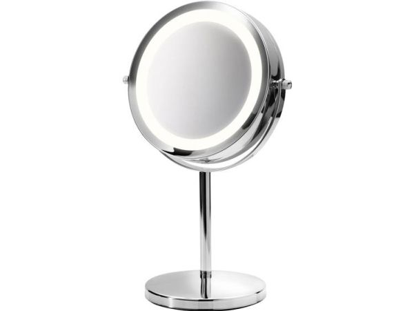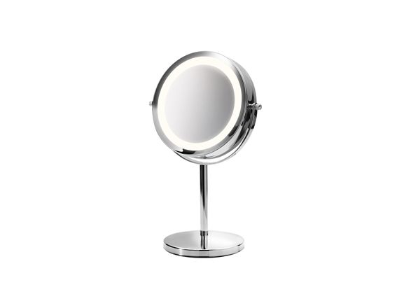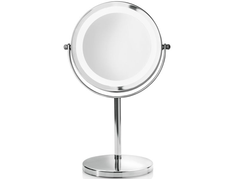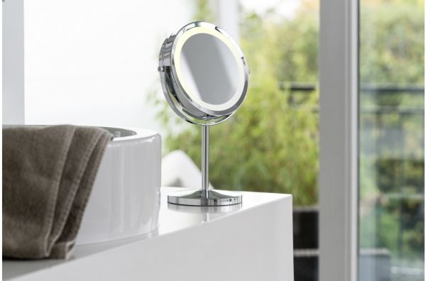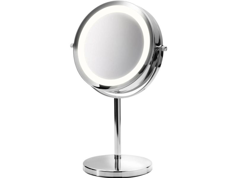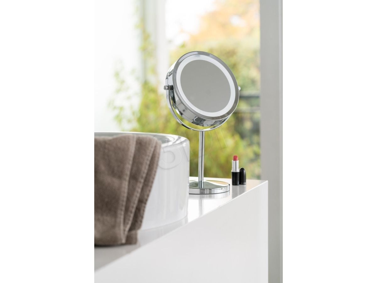 - Diameter of mirror 13 cm - Illuminated cosmetics mirror - Stable base - High-quality chrome finish - Bright LED light