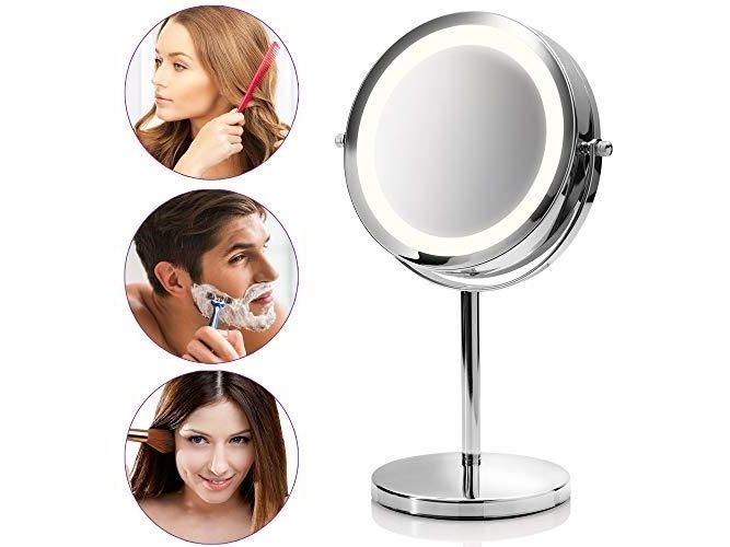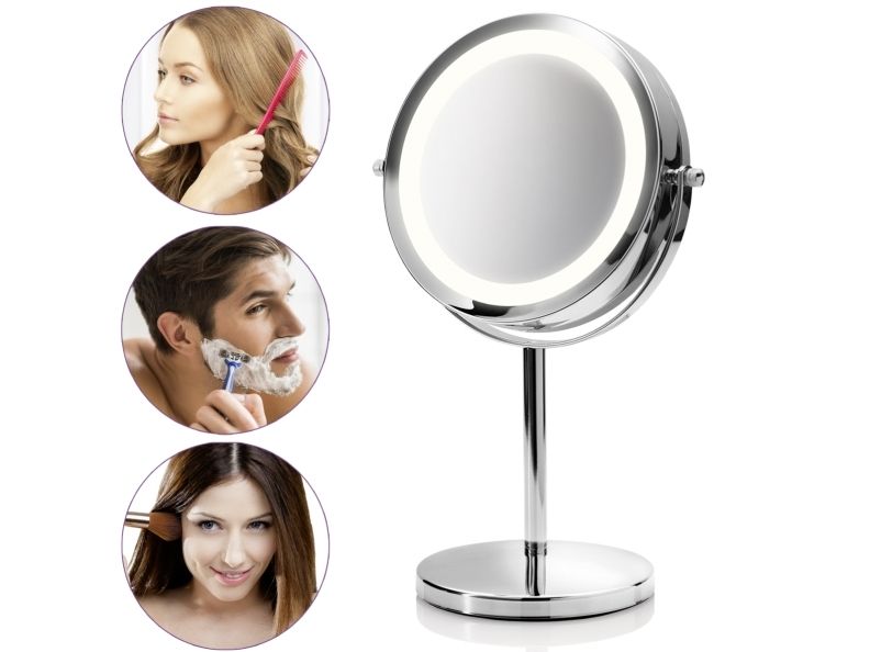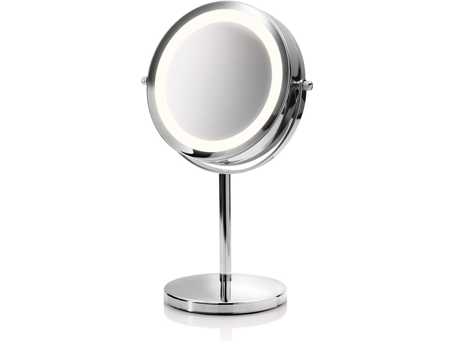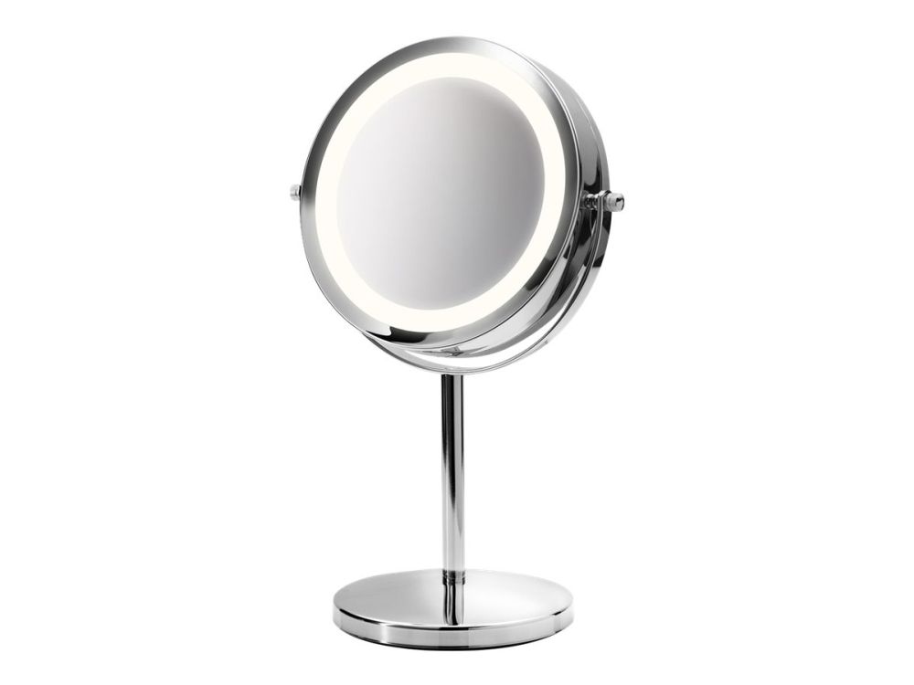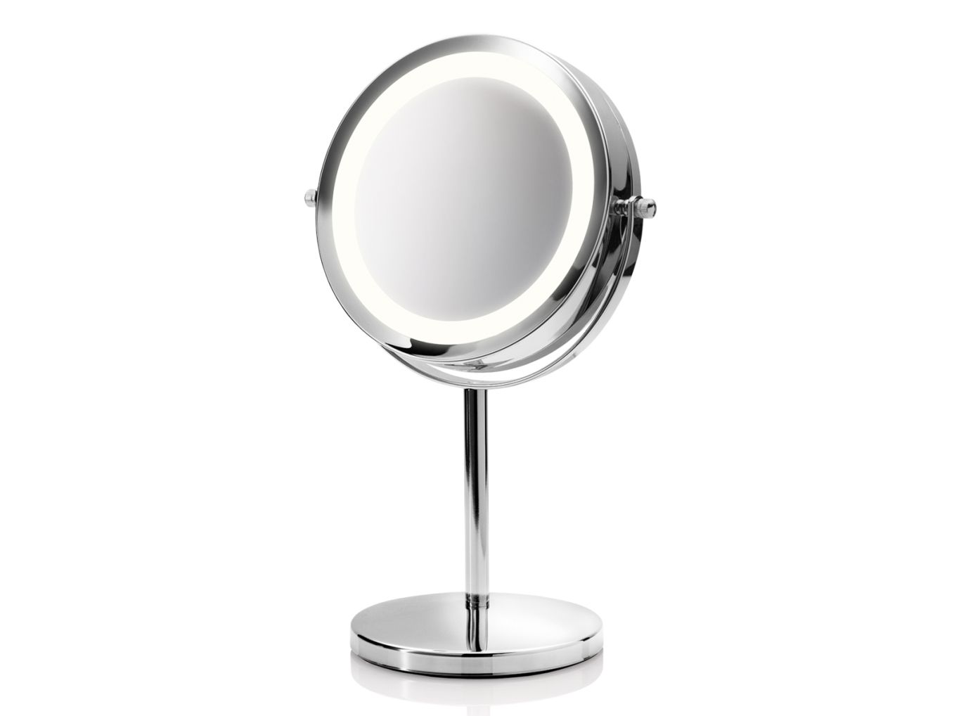 - Diameter of mirror 13 cm - Illuminated cosmetics mirror - Stable base - High-quality chrome finish - Bright LED light