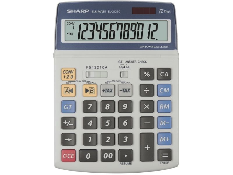 Sharp EL-2125C - Skrivbordskalkylator - 12 siffror - batteri, solcellspanel