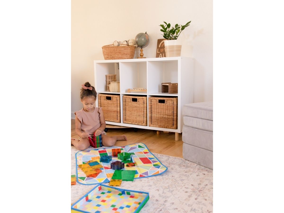 Looking for the perfect accessory for your children’s growing MAGNA-TILES® collection? Look no further than the MAGNA-TILES® Storage Bin & Interactive Play-Mat! This versatile, two-in-one solution helps to keep play areas organized while also serving as a comfortable and colorful play-mat for your children to build on. It’s ideal for families with children ages three and up looking for the best way to store MAGNA-TILES® and other toys. Comprised of durable, non-toxic materials, the MAGNA-TILES® Storage Bin & Interactive Play-Mat is easy to clean, with most accidental stains or spills easily removed with soap and warm water. Not only does it encourage children to spend more time learning colors, shapes, math, science, and more, the Storage Bin & Interactive Playmat also allows them to practice good habits when it’s time to clean up after a full play session.