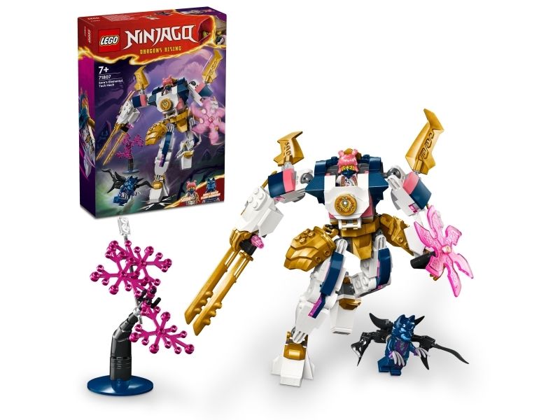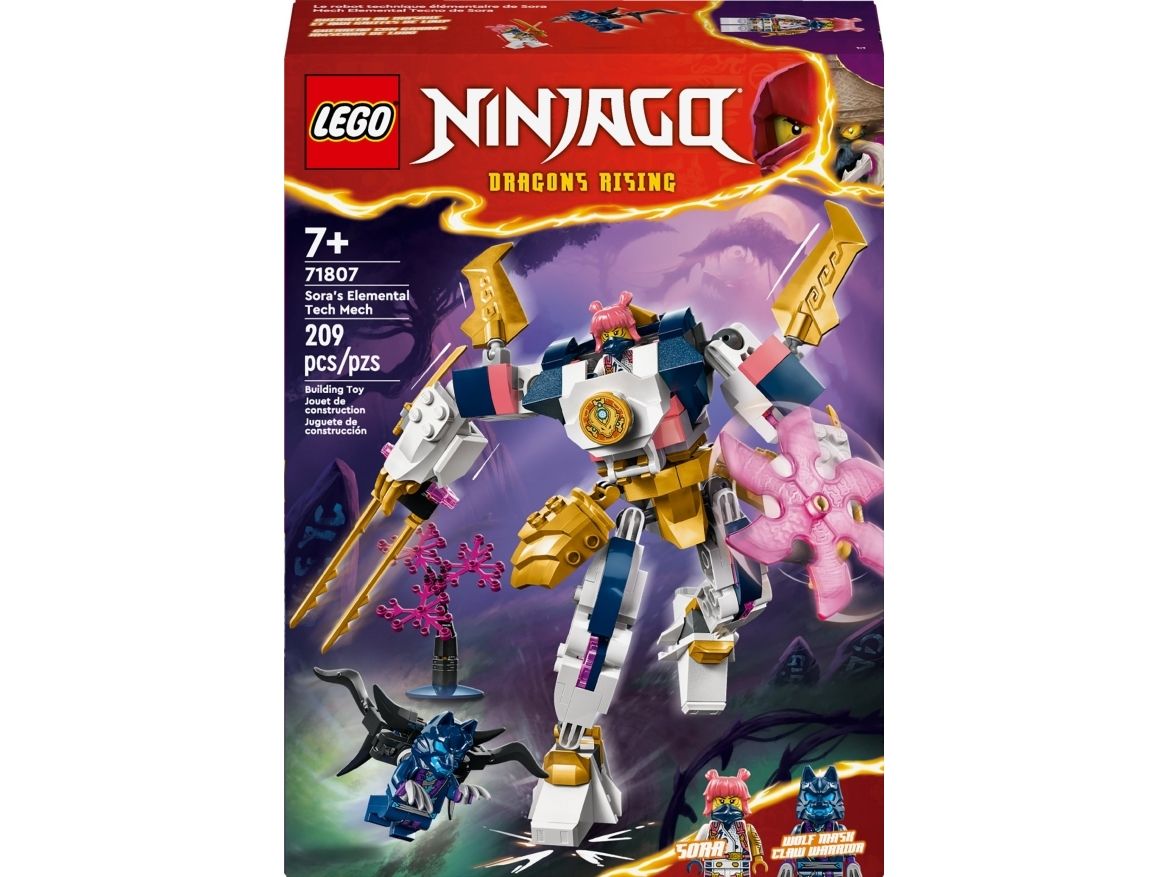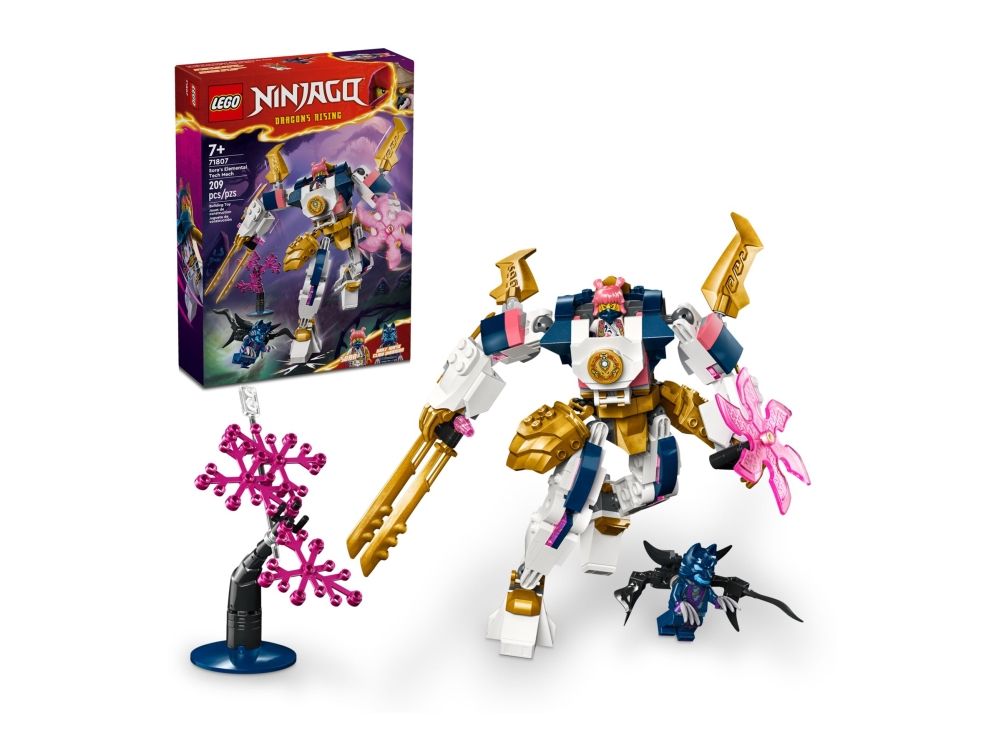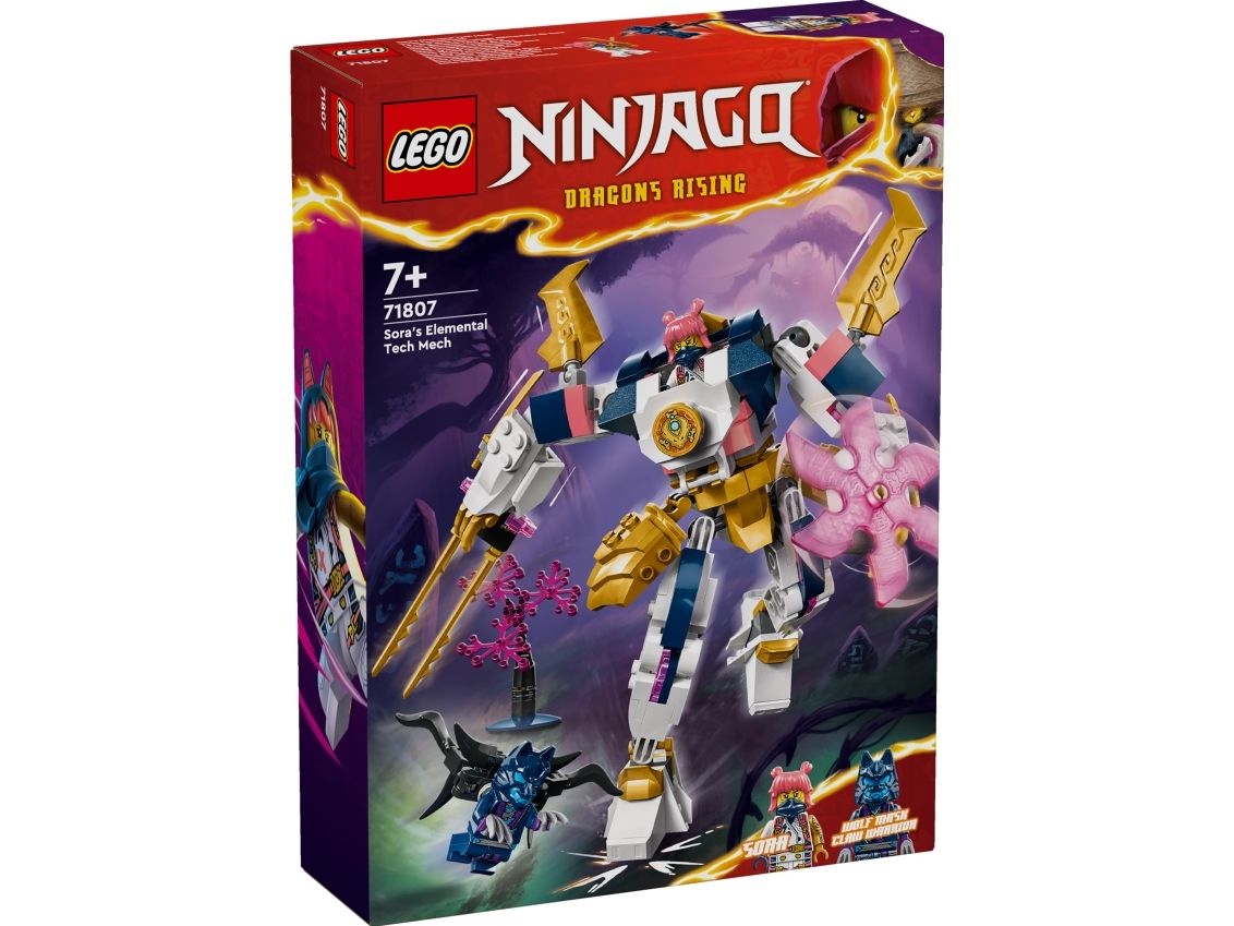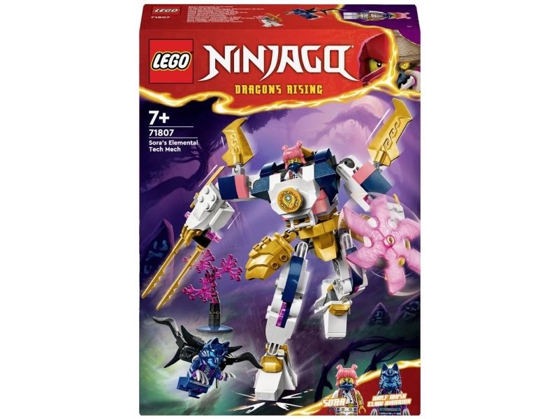 Flickor och pojkar från 7 år kan återskapa berättelser från säsong 2 av tv-serien NINJAGO® Drakarna vaknar med äventyrsleksaken Soras elementteknikrobot (71807). Den coola roboten har rörliga armar och ben, som barn kan luta och vrida till dramatiska stridspositioner, plus ett stort svärd, en roterande klinga och en cockpit med plats för en ninjaminifigur.