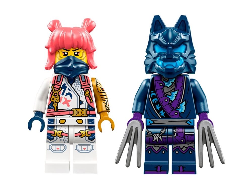 3. 2 NINJAGO® minifigurer – Setet innehåller Sora och hennes 2 katanasvärd och en klokrigare i vargmask så att barn kan iscensätta strider från säsong 2 av tv-serien NINJAGO Drakarna vaknar