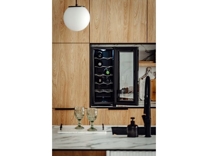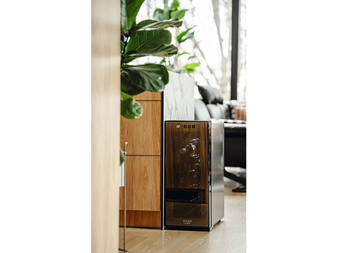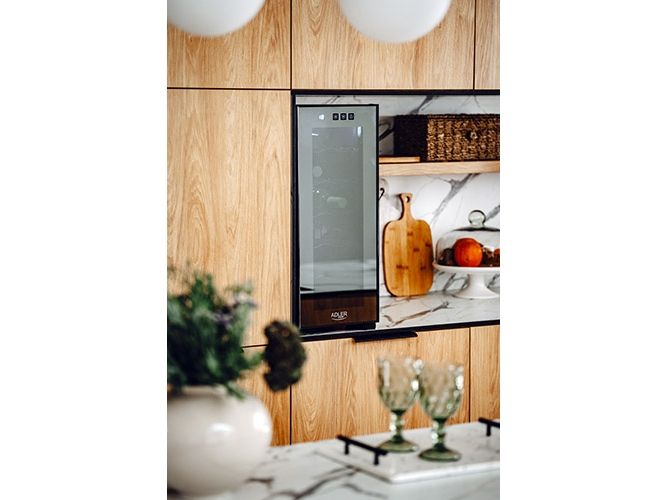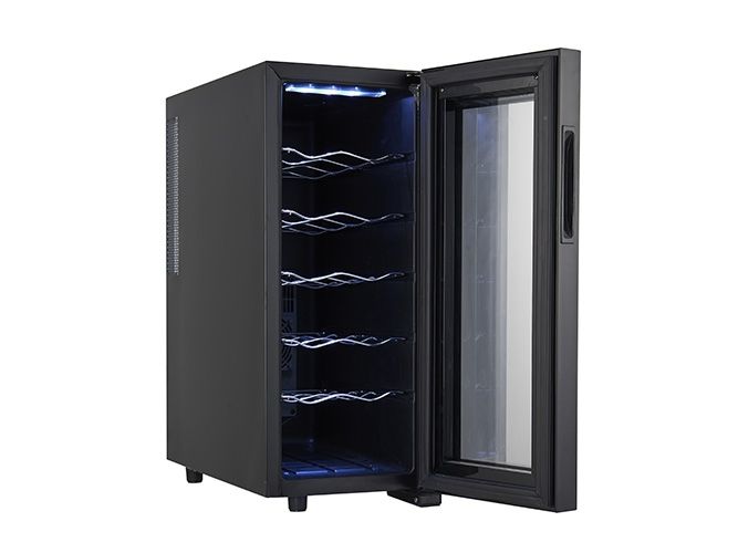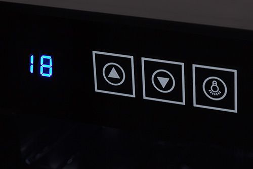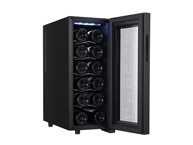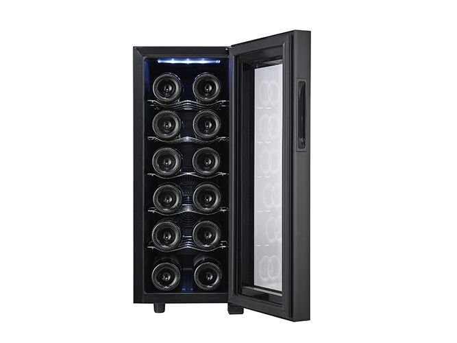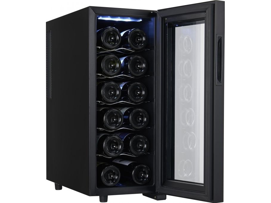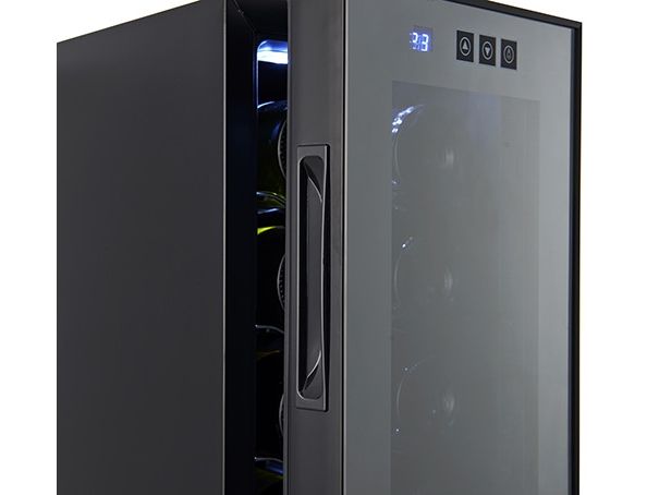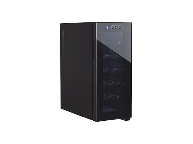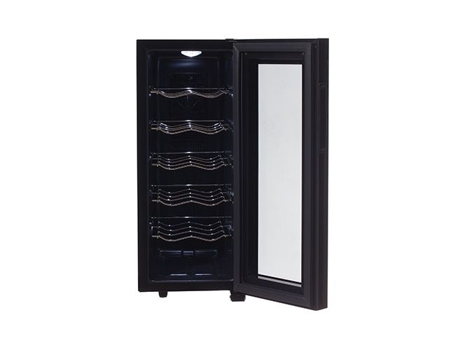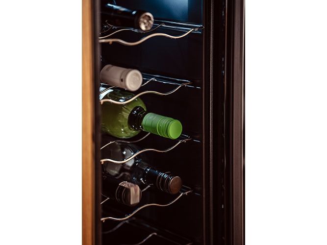 Den angivna flaskkapaciteten beräknas med en flaska Bordeaux som standard och utan hyllor i skåpet. Dvs. att det faktiska antalet flaskor som skåpet kan rymma, med hyllor monterade, kommer att vara mindre än den mängd som anges i produktspecifikationerna.