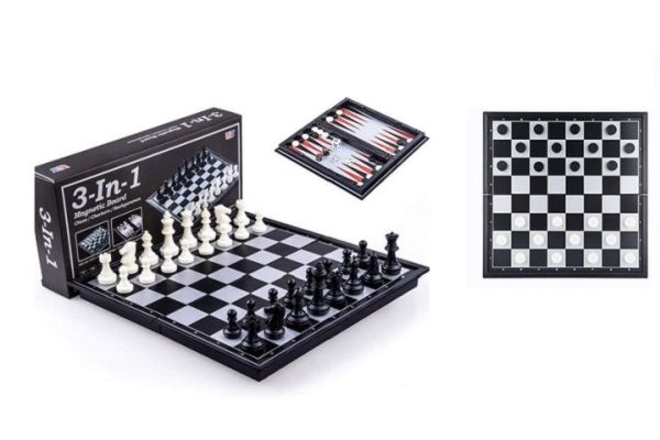 Schack 3-i-1 magnetiskt plast 31,5x31,5 cm WKGRA-7 17905