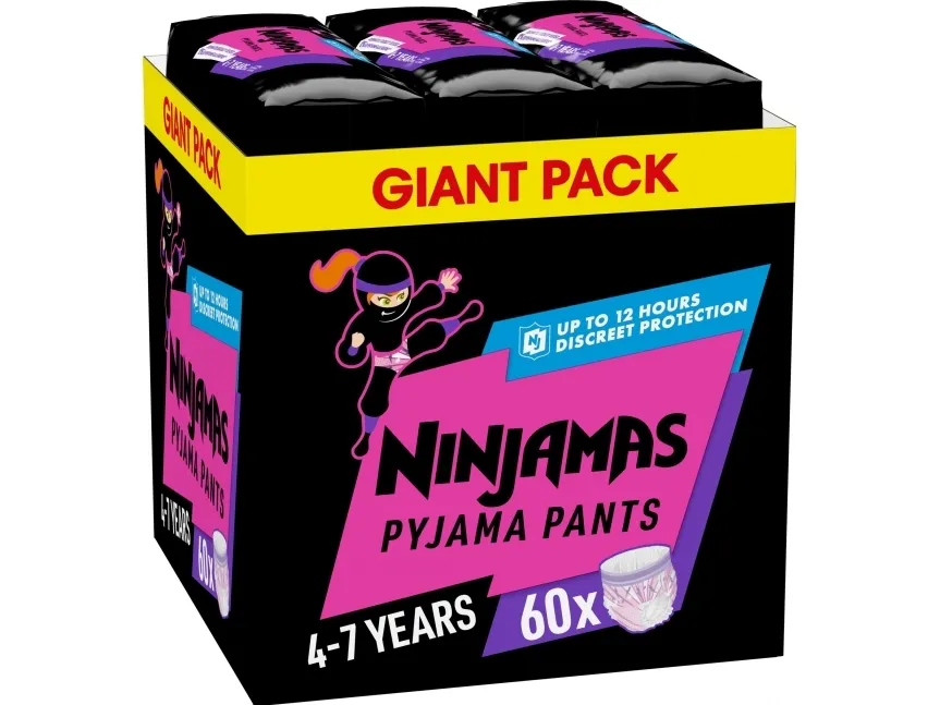 Pampers Ninjamas Night Pants Diaper for Girls 60 Pyjama Pants 4-7 Years Absorbent Leak Protection All Night Girls 4-7 Years