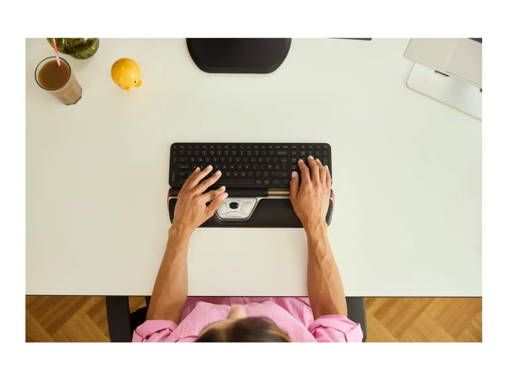 RollerMouse Red är en förstklassig ergonomisk mus i aluminium med centruminriktning, bred räfflad rullstång och scrollhjul för bättre kontroll. RollerMouse Red är anpassad för alla de funktioner du kan använda på en dator i dagsläget och för alla skärmstorlekar. rullstången är placerad framför din kropp, vilket säkerställer musarbete med minimal sträckning och den centrerade arbetsställningen skyddar mot rygg-, nack- och axelvärk under hela dagen. Det smala handledsstödet av veganläder och memoryskum har en antibakteriell yta med hög tålighet mot desinfektioner för optimal hygien. Det smala handledsstödet är perfekt för mindre händer och kompakta arbetsplatser. De inbyggda copy/paste-knapparna gör det enkelt att snabbt överföra text eller bilder mellan program och om du har andra genvägar som du ofta använder kan knapparna ställas in på dessa.