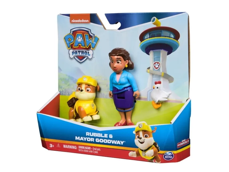 Create your own PAW Patrol adventures with Rubble & Mayor Goodway! Featuring genuine PAW Patrol design & styling, each figure looks just like they do in the show. When it’s time for an exciting rescue, use your imagination to re-create your favorite episodes from the PAW Patrol series with Rubble, Mayor Goodway & Chickaletta, or create entirely new missions of your own! PAW Patrol toys for boys & girls are great gifts for kids who are fans of the show, to foster imaginative pretend play and enhance fine motor skills. Relive cherished moments from PAW Patrol seasons, such as the Mighty Pups and the PAW Patrol Movie or create entirely new adventures with individual PAW Patrol pups and their respective toy cars (each sold separately). Elevate the excitement with the complete Rescue Wheels team, including PAW Patrol vehicles, action figures and the all-new PAW Patrol Tower HQ for endless hours of turbo-charged adventures inspired by the series!PAW Patrol Rubble, Mayor Goodway & Chickaletta Figures, Kids Toys for Boys and Girls Ages 3 and Up. Recommended age (min): 3 yr(s), Theme: Paw Patrol, Product colour: Multicolour