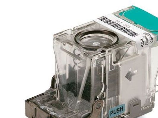HP erbjuder denna utbyteskassett med 5000 häftklamrar för multifunktionsenheten för färdigställande.