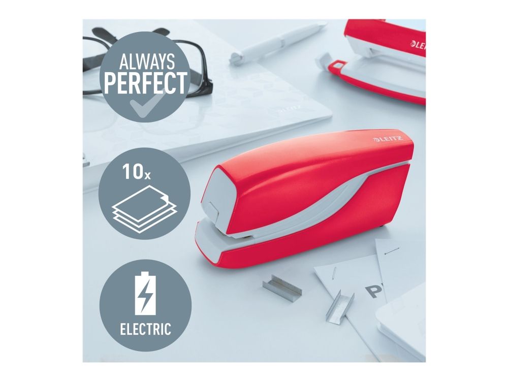 Leitz NeXXt WOW - Elektrisk häftapparat - 10 ark / 1 mm - E1 - plast, metall - röd