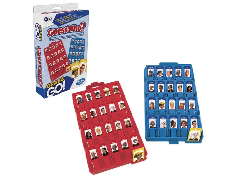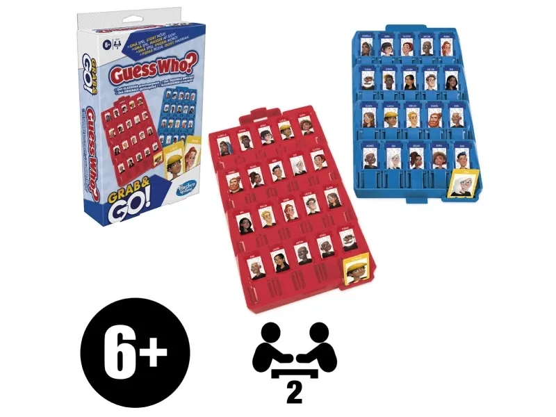 Vem gissar bäst? Det här kompakta Vem där? Grab & Go-spelet ger samma klassiska Vem där?-spelupplevelse fast i reseformat! Precis som i det stora spelet frågar spelarna sin motspelare ja- eller nej-frågor och kommer med varje svar närmare till att få reda på vem som är på motståndarens hemliga kort. När spelarna tror sig veta vem motspelarens hemliga figur är får de gissa. Gissa rätt för att vinna! Med det lilla reseformatet kan barn över 6 år spela Vem där? Grab & Go-spelet nästa var som helst på resande fot! Dessutom är det enkelt att förbereda och har inbyggd förvaring. Hasbro Gaming och alla relaterade namn är varumärken som tillhör Hasbro.