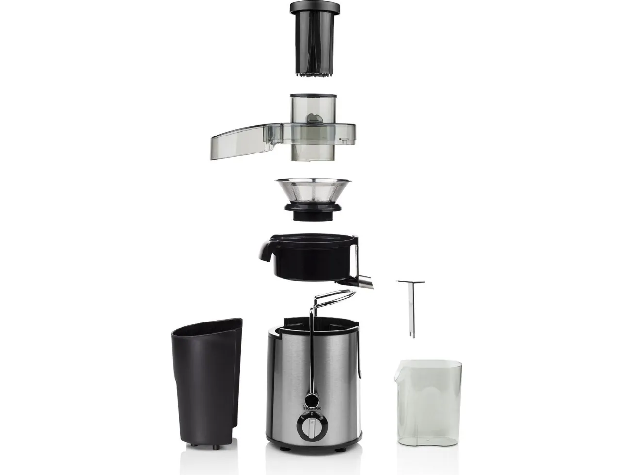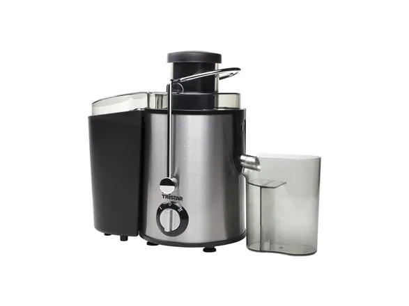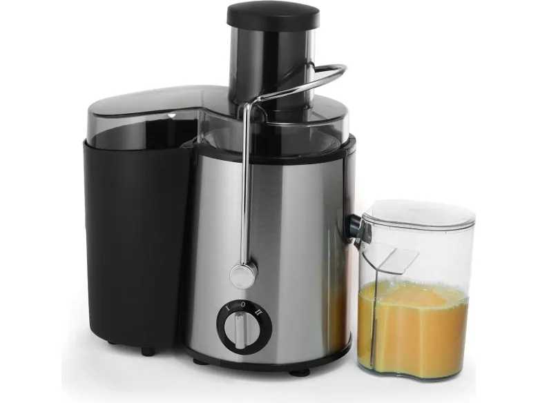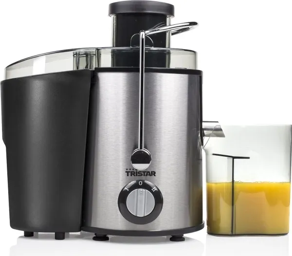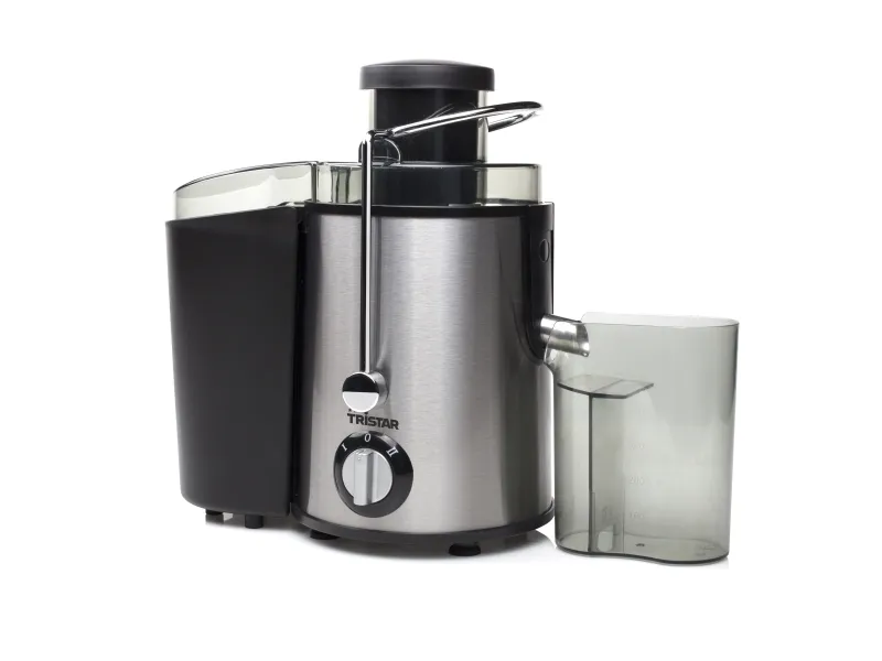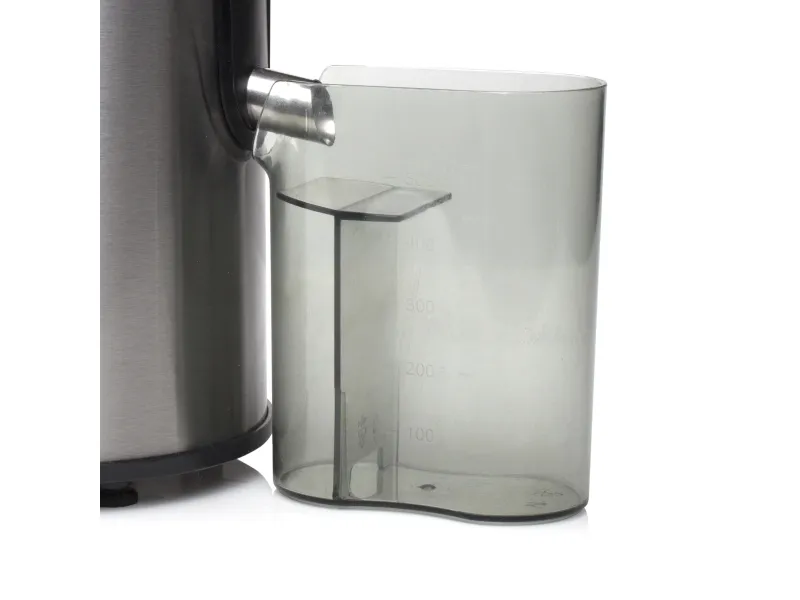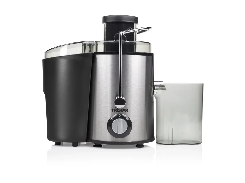 The juicer allows you to make the best and healthiest fresh juices in no time! You can put vegetables and fruit as a whole in the large opening. The ingredients are grated and the juice and pulp separated. The two speed settings make the juicer even more suitable for both hard and soft ingredients. The juice is released into the container with a spout and a volume of 0.5 litres.
