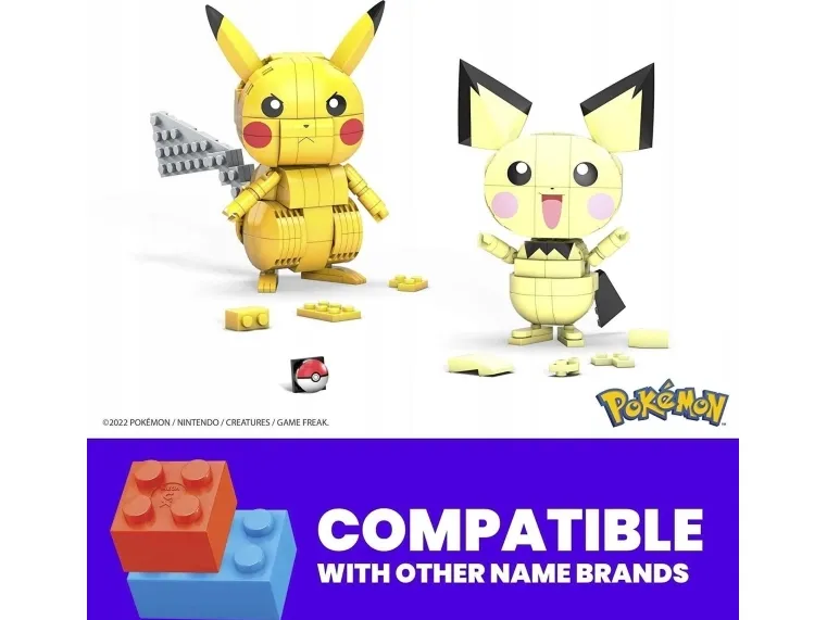 Prepare for battle with a truly electrifying trio. This construction set features the full Pichu Evolutions, including Pikachu and Raichu, each with articulated limbs and equipped with their own special power. Special pieces which fit in Pichu's hands represent electric power while Pikachu and Raichu are equipped with their own mighty moves. It all comes together for a shockingly authentic building experience. Including 3 figures each standing over 4-inches tall​. Ideal for Wonder Builders, ages 6 and up​.