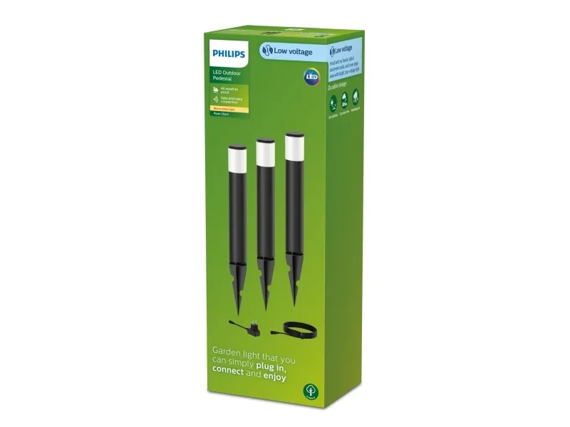 Philips Purex piedestal-/gånglampa 1,5 W, Markbelysning utomhus, Svart, Gjuten aluminium, Plast, IP44, Trädgård, II