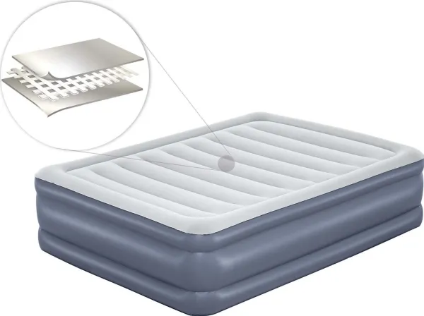 The built-in AC air pump inflates the mattress in 4 minutes, so it is ready for bed when you are. In the morning, the quick deflate valve allows for easy takedown. Simply place your flattened and folded bed in the included carry bag for easy transport and storage.Bestway Tritech Air Mattress Queen with Built-in AC Pump and Antimicrobial Coating 2.03 m x 1.52 m x 51 cm. Type: Double mattress, Product colour: Grey, Material: Tritech. Width: 1520 mm, Length: 2030 mm, Height: 510 mm. Package width: 190 mm, Package depth: 390 mm, Package height: 350 mm. Minimum order quantity: 2 pc(s), Master (outer) case length: 400 mm, Master (outer) case width: 400 mm