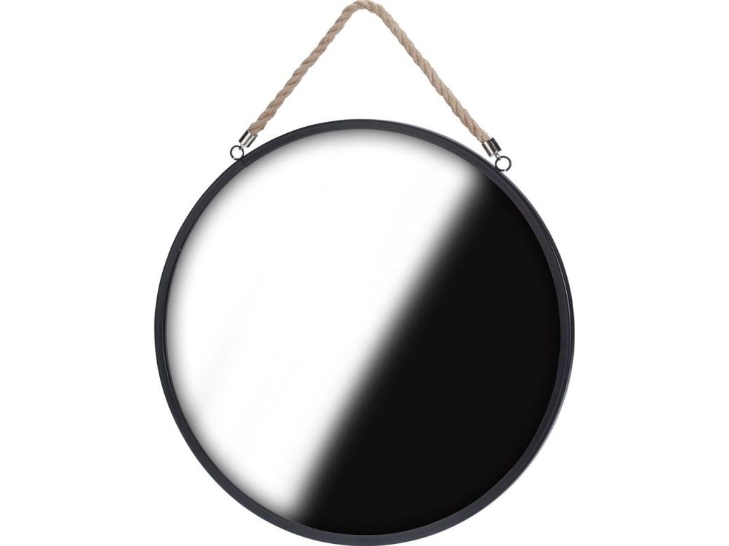 Home Styling Collection runt spegel på snöre/rem, svart, Loft