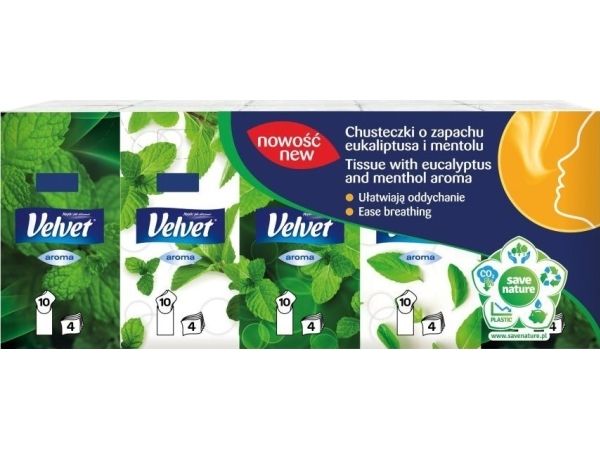 Velvet hygienservetter med eukalyptus & mentol, 4-lagers, 10x10 st, vita