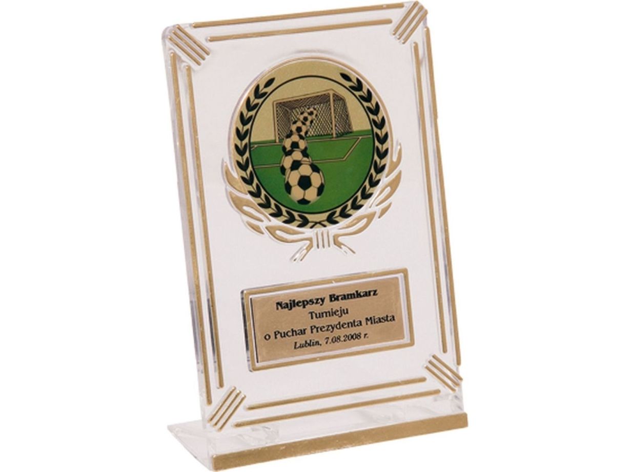 Victoria Sport pokal i plast - genomskinlig - guld med plats för etikett 50 mm och skylt 50 mm x 20 mm T-M