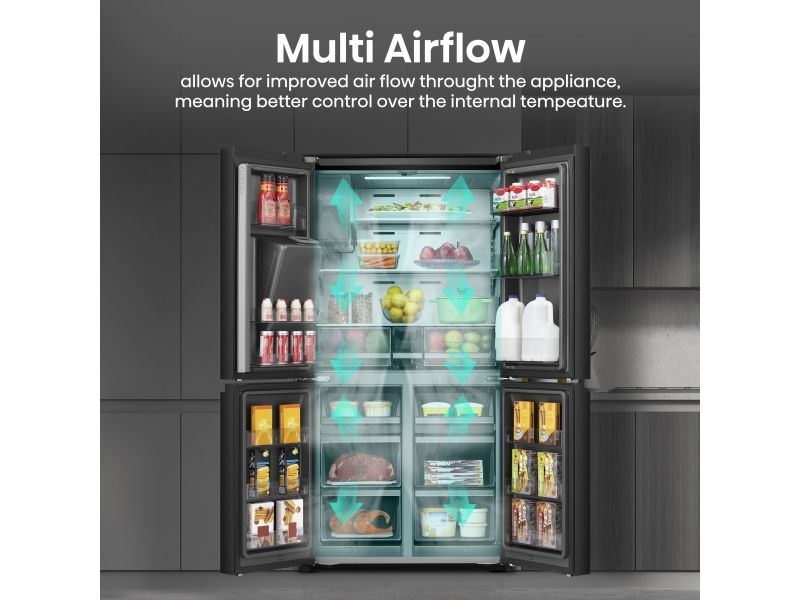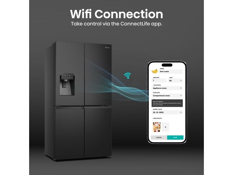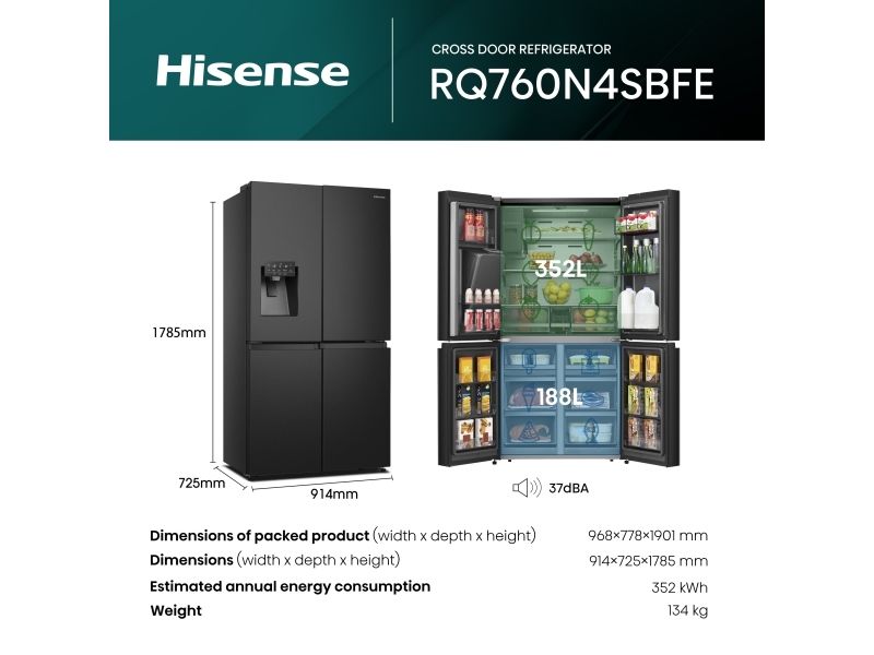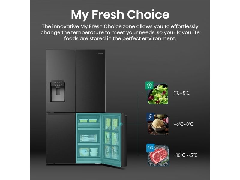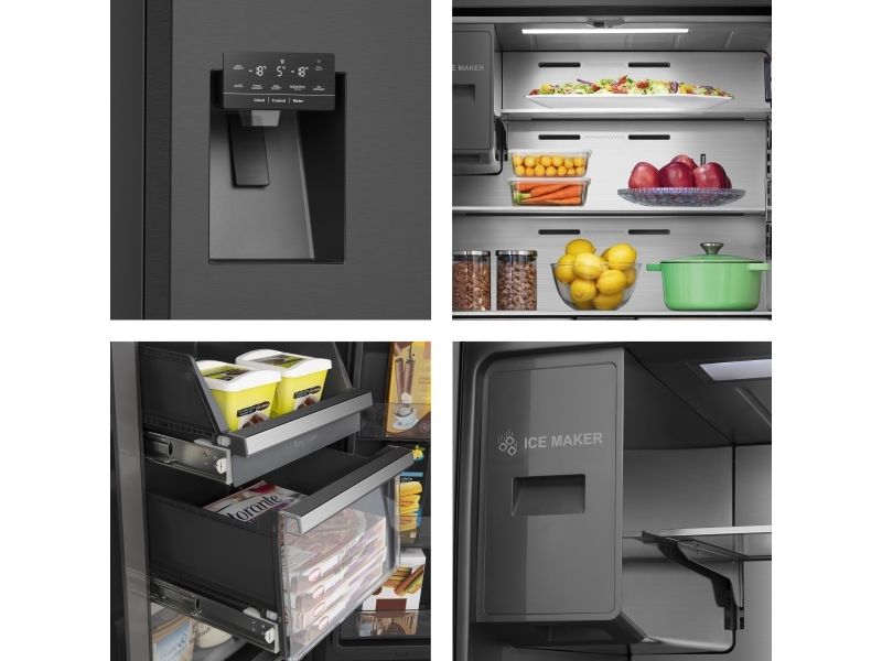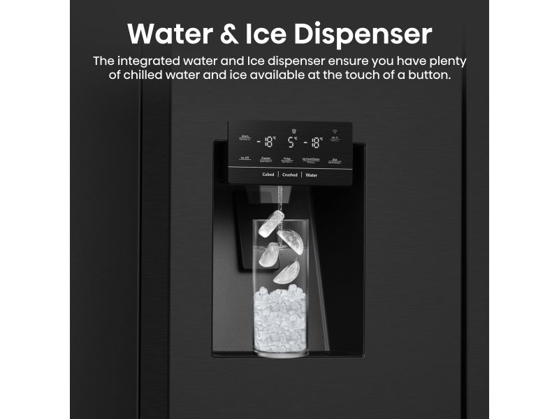 Hisense RQ760N4SBFE, Fristående, Amerikansk dörr, Svart, Rostfritt stål, Röra, LCD, På dörren