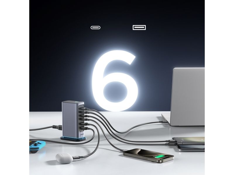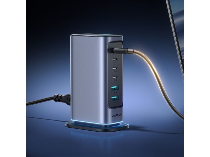 Joyroom JR-TCM02 laddare 65W GaN 4x USB-C 2x USB-A EU mörkgrå