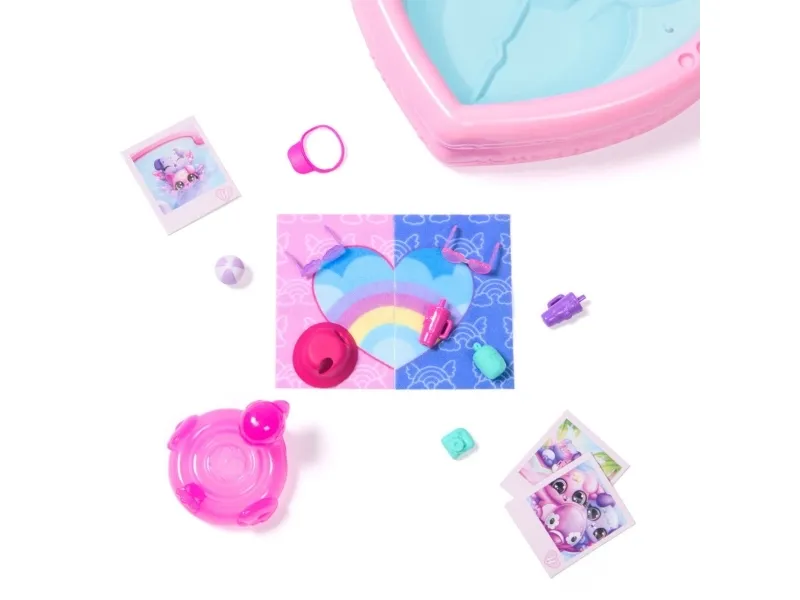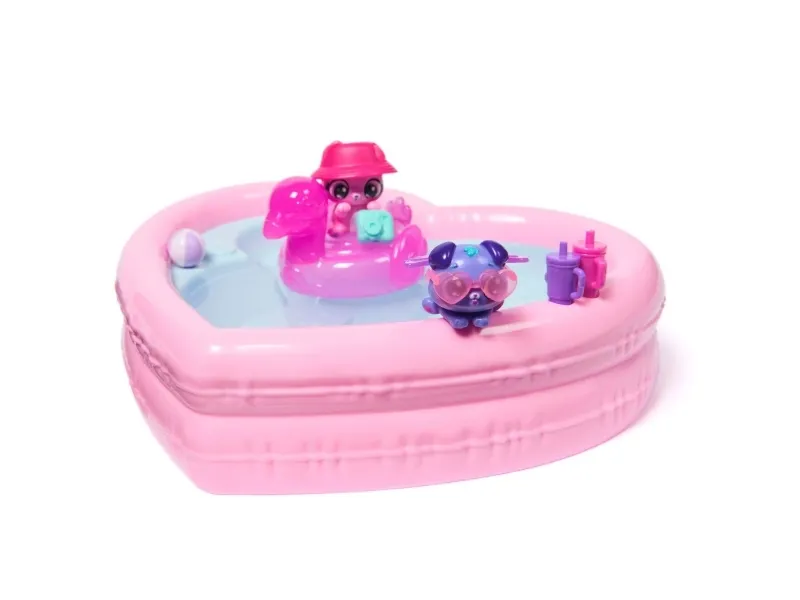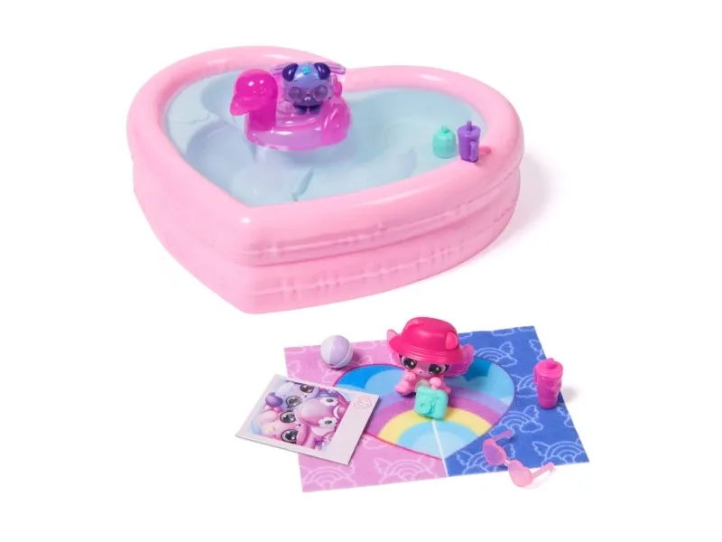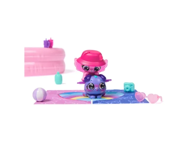 Experience a Hatchimals Alive Bestie Pool Party. With your love and care, Neon Rainbow Hatchimals come to life with neon eggs that hatch in water, changing the water’s color. This set includes 2 Hatchimals in eggs, a heart-shaped pool and 14 accessories. Before hatching, choose a spot that’s easy to clean and protect your play area. Set the eggs in the pool, remove the wings and slowly fill the bestie heart with water – your characters will start cracking through the eggs as each side of the heart changes color. As more water is added, the colors blend into purple, bonding your besties for life. Discover 2 Puppadees that stack into a cute pose and so many accessories for the ultimate pool party: a flamingo floatie, beach ball, sunglasses and more. Plus, each character has a fabric towel that join to form a bestie heart. After play, thoroughly dry the set. Those who enjoy action figures, small toys, dolls, and doll house play will love Hatchimals surprise toys. A fun gift idea for birthday gifts for girls and boys, Easter egg fillers, holiday gifts and more. Bring Hatchimals Alive BFFs to life with the Neon Rainbow Bestie Pool Party.