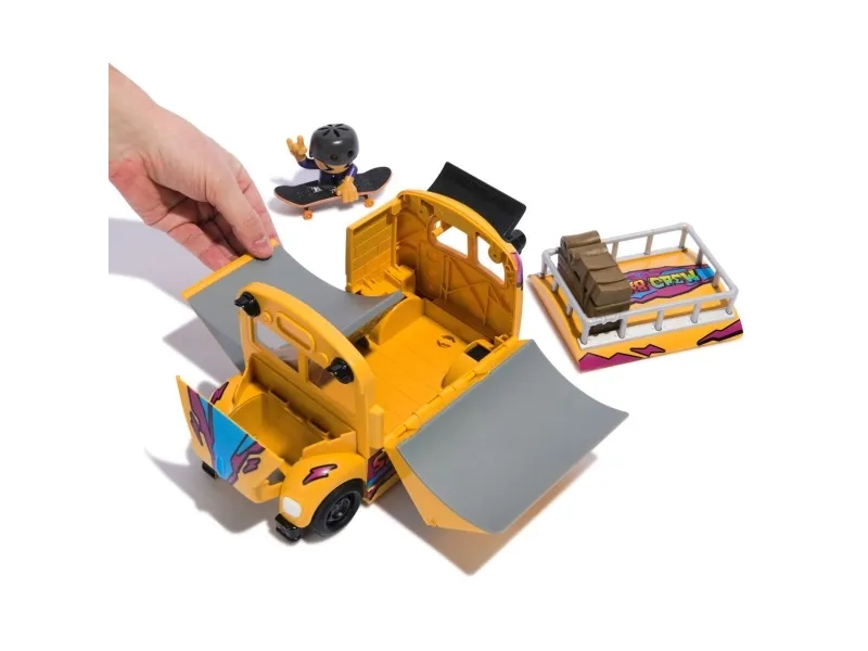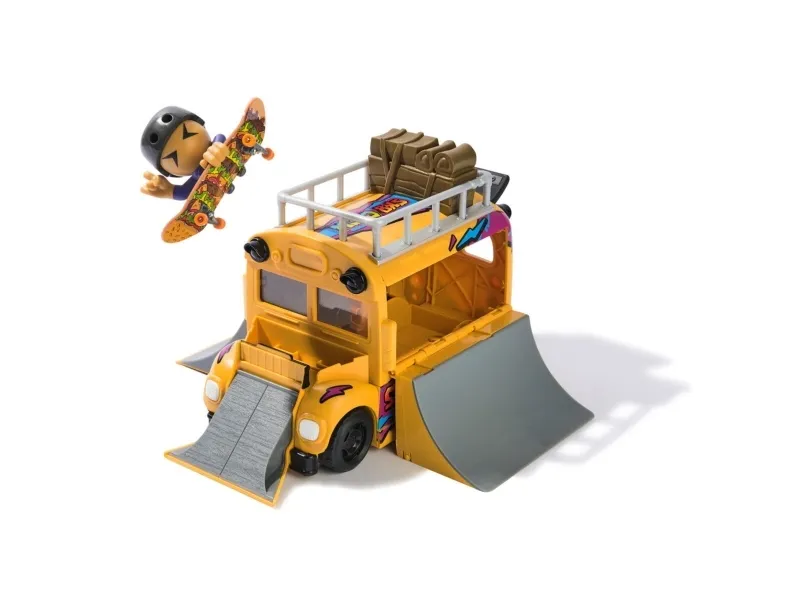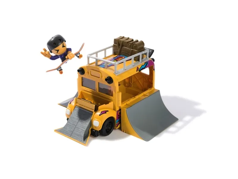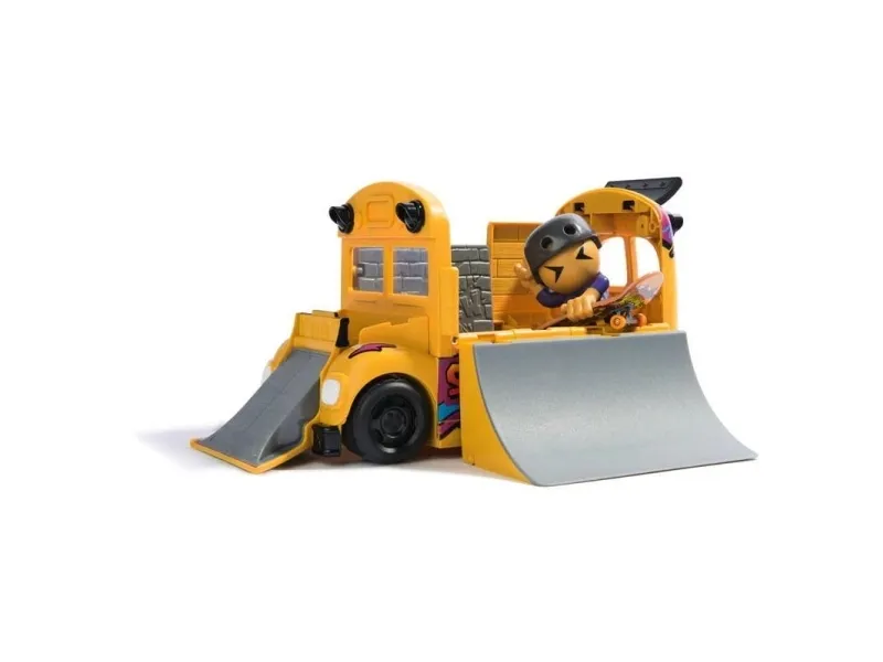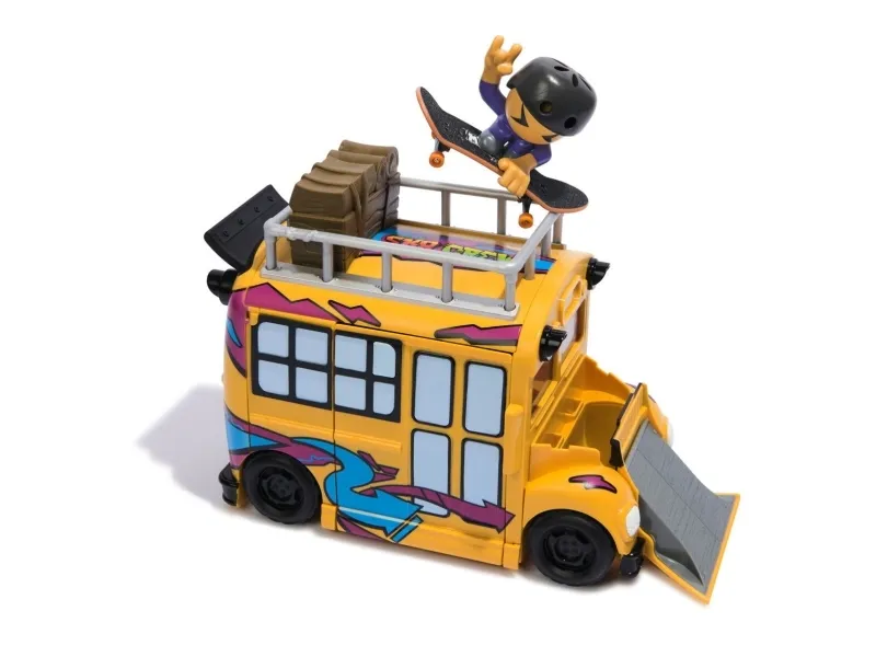 Fingerboard in style with the Tech Deck 2-in-1 Transforming Ultra Sk8 Bus. Roll in with real working tires on the Skate Bus. This skatepark folds out with 3 ramps to practice your skateboard skills. Use the top of the Skate Bus to grind and create new combos. Catch air with two quarter pipes and the ramp on the hood of the bus. Snap the skate crew member onto the skateboard deck and start practicing the right techniques. Scan the QR code for video tutorials to study your favorite moves. Cleaning up is easy with the Sk8 Bus. Fold up the ramps and place your Sk8 Crew figure and fingerboard inside for storage and take the adventures on the go. Collect all 15 Sk8 Crew figures to level up your collection (sold separately). Ride and grind your new finger skateboards on the X-Connect series. Build out the Quarter Bowl Ruckus or Pyramid Shredder 2.0 ramp sets (each sold separately) for you to shred your skateboard decks on your favorite fingerboard obstacles like the Tech Deck Skatepark. There are a ton of Decks, toy figures & playsets to collect! Ride, flip, and grind with Tech Deck fingerboards and BMX from real skate companies! Tech Deck mini skateboards for fingers and ramp sets make the perfect gift for girls toys age 6-8 who love small toys, cool toys, hot toys. Are you looking for 3 year old boy toys consider Tech Decks as an alternative to toy cars as a boys toys age 6-8 item. Bring the Tech Deck Ultra Sk8 Bus home today and learn to fingerboard.