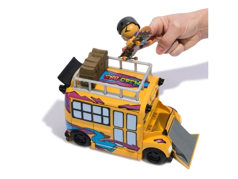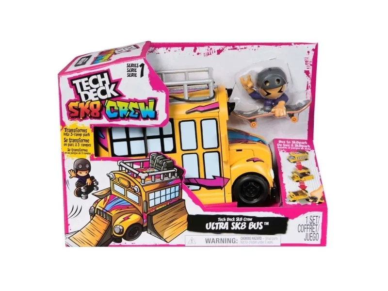Includes: 1 Sk8 Bus, 1 Sk8 Crew Member, 1 Tech Deck FingerboardTech Deck Sk8 Crew 2-in-1 Transforming Ultra Sk8 Bus & Storage with Fingerboard & Figure, Collectible Mini Skateboards, Kids Toys for Ages 5 and up. Product type: Bus, Recommended age (min): 5 yr(s), Material: Plastic, Product colour: Multicolour