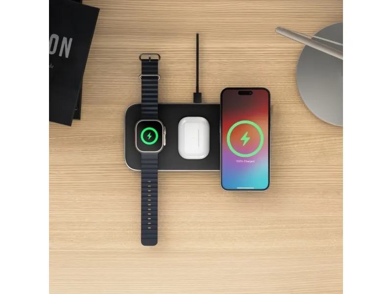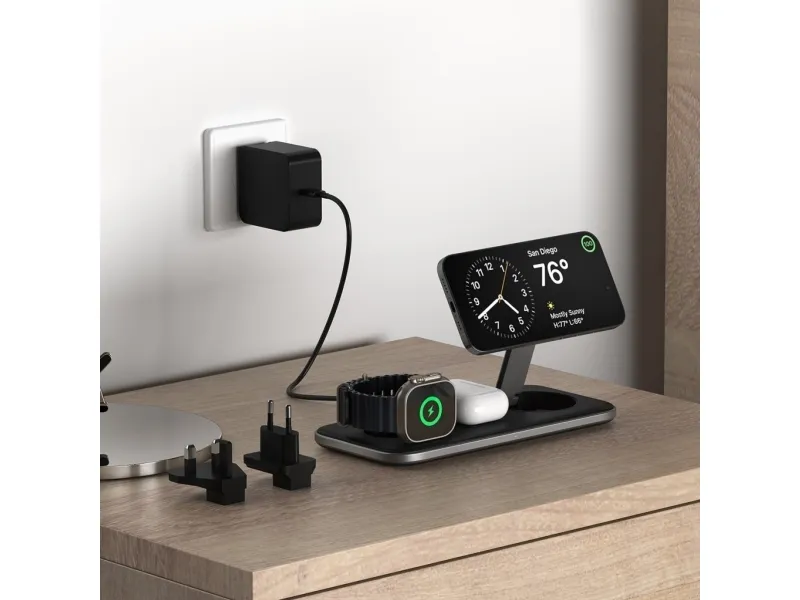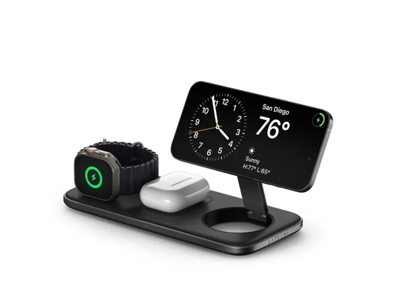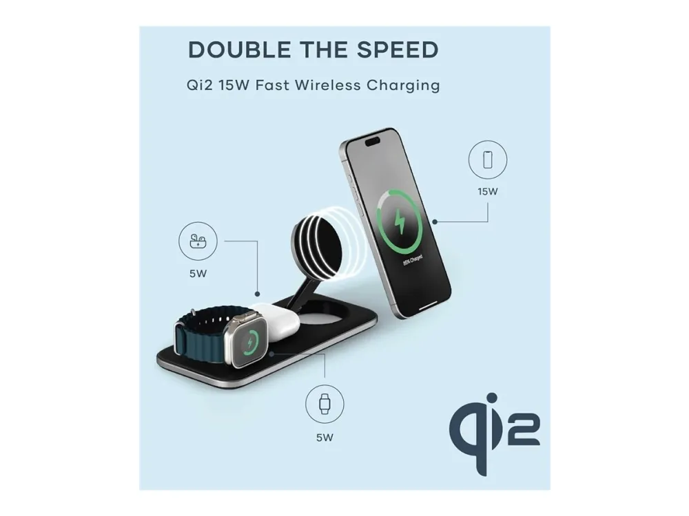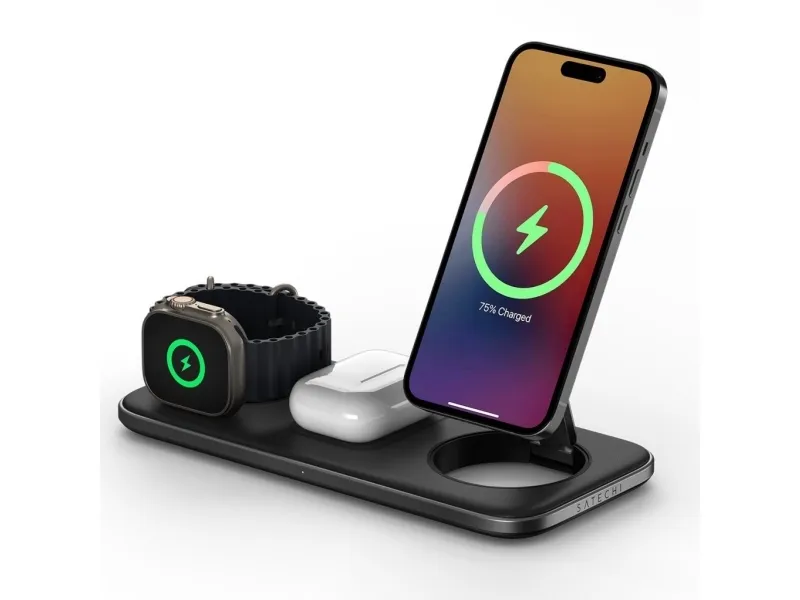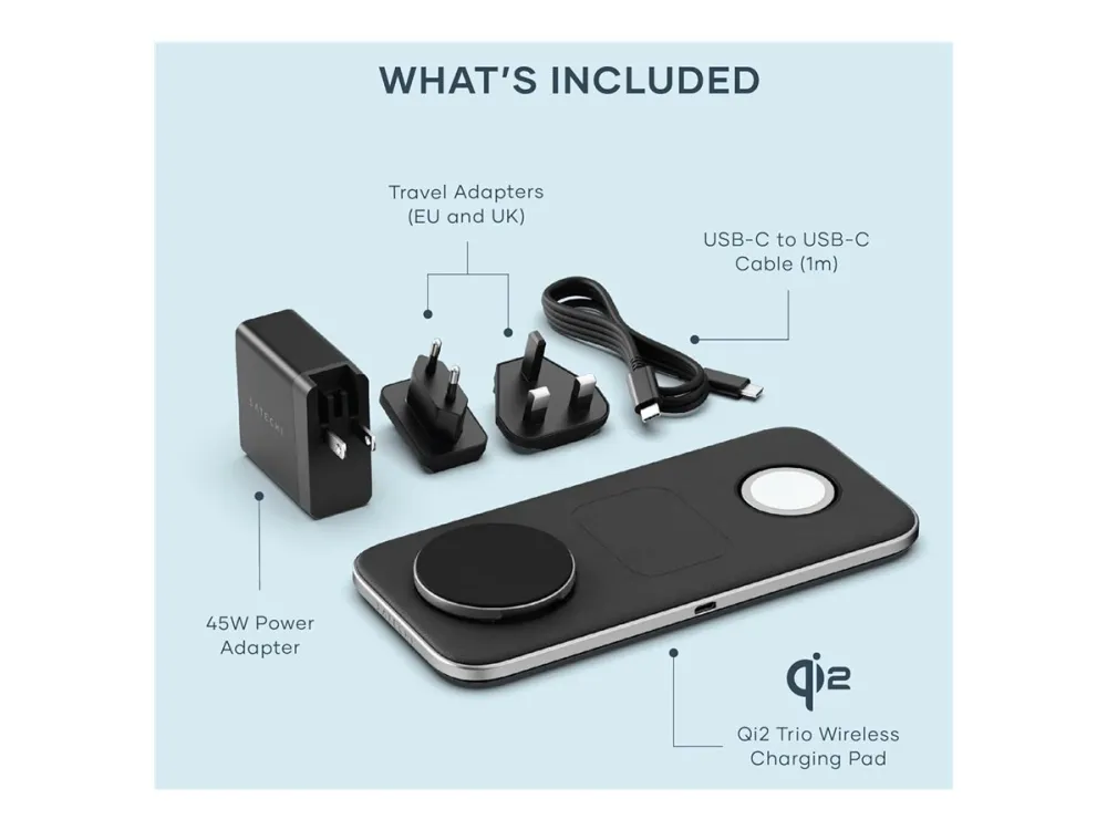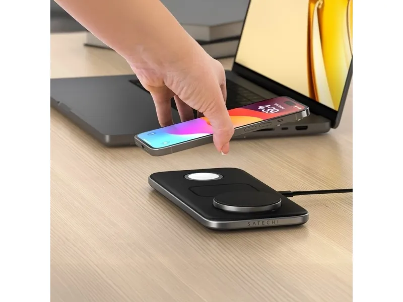Satechi ST-QTPM-EA - Trådlös laddningsplatta - Qi2 Trio + växelströmsadapter - 15 Watt - Fast Charge