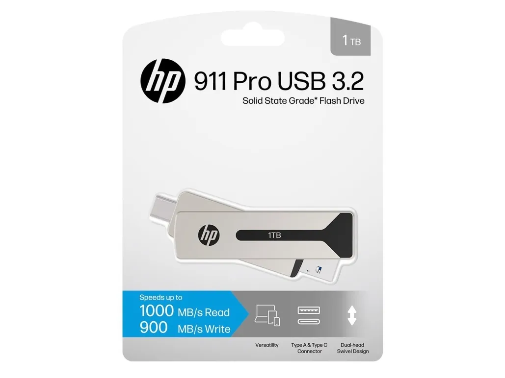The HP 911 Pro USB flash drive offers a storage capacity of 256 GB, making it easy to store and transport important files. Equipped with a swivel design, this flash drive is practical, ensuring protection for the USB connector when not in use. With a read rate of 1000 MB/s and a write rate of 900 MB/s, users can expect fast data transfer speeds that enhance productivity and efficiency in file management. Compatible with various devices, this USB flash drive is ideal for personal or professional use, providing reliable performance in a variety of environments.