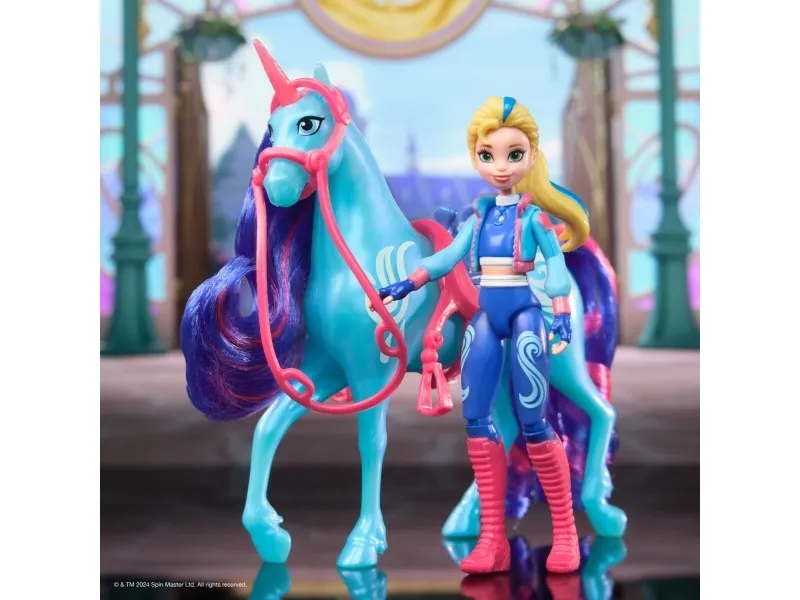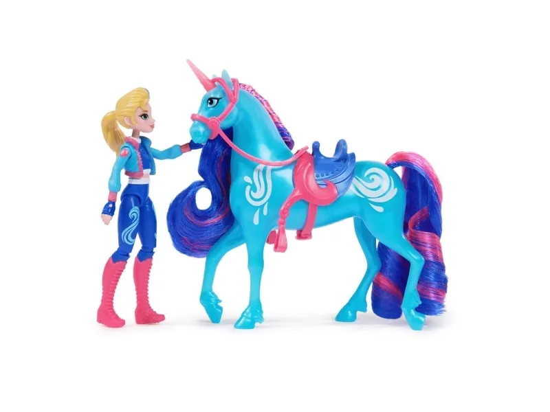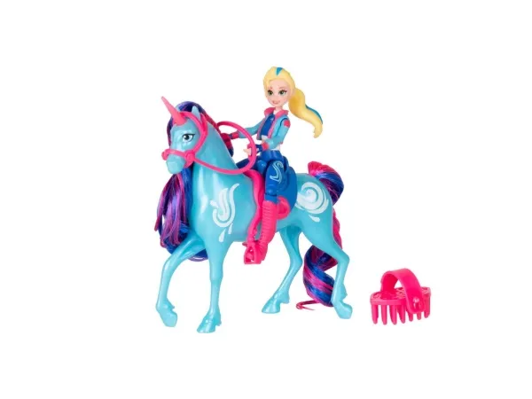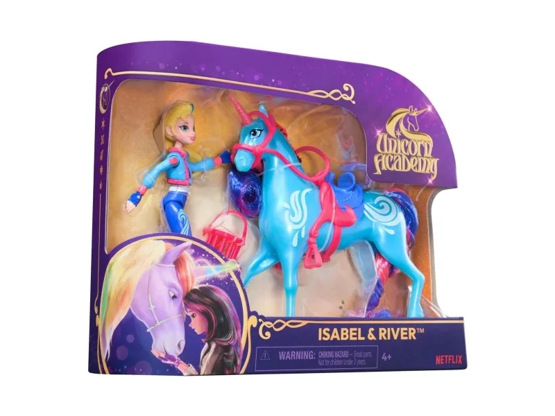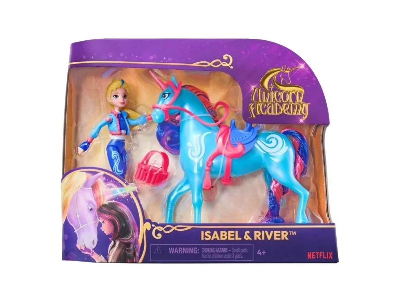 Isabel & River-leksetet från Unicorn Academy är en hyllning till det starka bandet mellan ryttare och enhörning. Isabel (11,4 cm) har 7 rörliga leder och verklighetstrogna detaljer från serien. River (12,7 cm) matchar Isabel med vattenmagimärken och blå och rosa man och svans som kan borstas (borste medföljer). Med det avtagbara tränset och sadeln sitter Isabel lätt på River medan de rider ut på nya äventyr. Figurerna från Unicorn Academy får liv inspirerade av den animerade NETFLIX-serien och de bästsäljande böckerna där vänskapen regerar. Utvidga din värld med modedockor, enhörningar eller de små dockorna och lekseten från Unicorn Academy (säljs separat). Unicorn Academy-leksakerna är den perfekta presenten för alla tillfällen till barn som älskar enhörningar, hästleksaker, dockor och tillbehör, dockskåp, samlarobjekt, gosedjur och liknande. Upplev förtrollande Unicorn Academy-äventyr med Isabel & River.