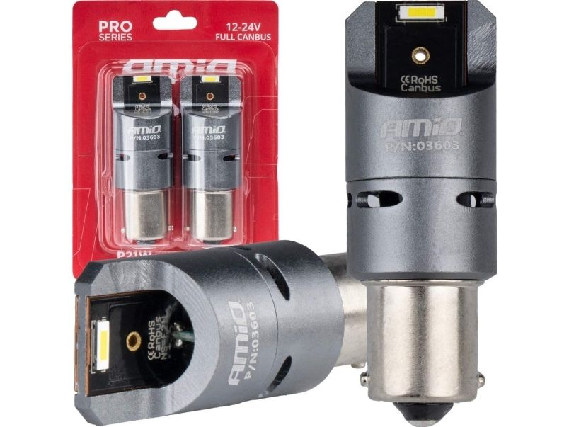 AMiO LED-lampor full canbus Pro BA15s P21W 2x1860SMD vita 12V/24V AMIO-03603