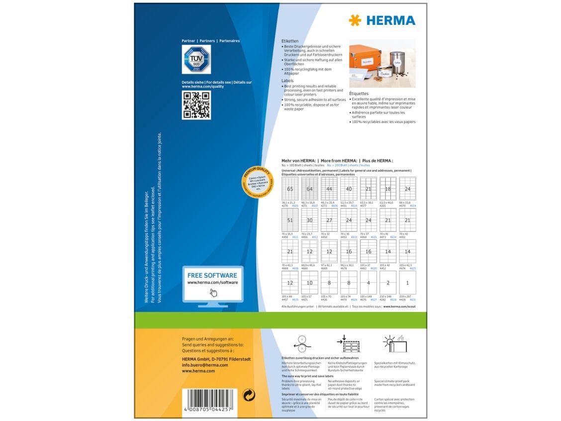 HERMA Premium - Papper - matt - permanent självhäftande - vit - 105 x 57 mm 1000 etikett (er) (100 ark x 10 laminerade etiketter