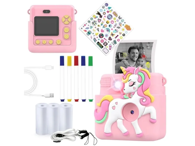 Includes a USB-A to USB-C cable, sticker sheet, color markers, print paper rolls, and an anti-choke strap for added convenience.Denver KPC-1363RO ROSE. Weight: 600 g. Product colour: Pink