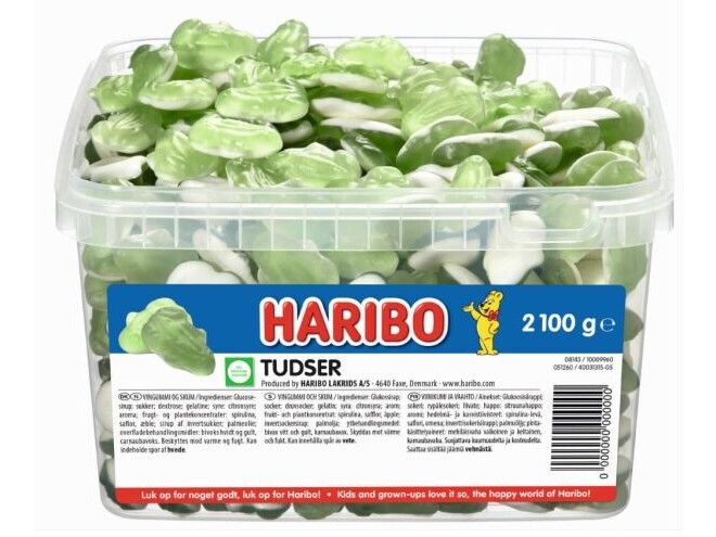 Ingredienser: Glucosesirup, sukker, dextrose, gelatine, syre: citronsyre aroma, frugt- og plantekoncentrater: spirulina, saflor, æble, sirup af invertsukker, palmeolie, overfladebehandlingsmidler: bivoks hvidt og gult, carnaubavoks.
