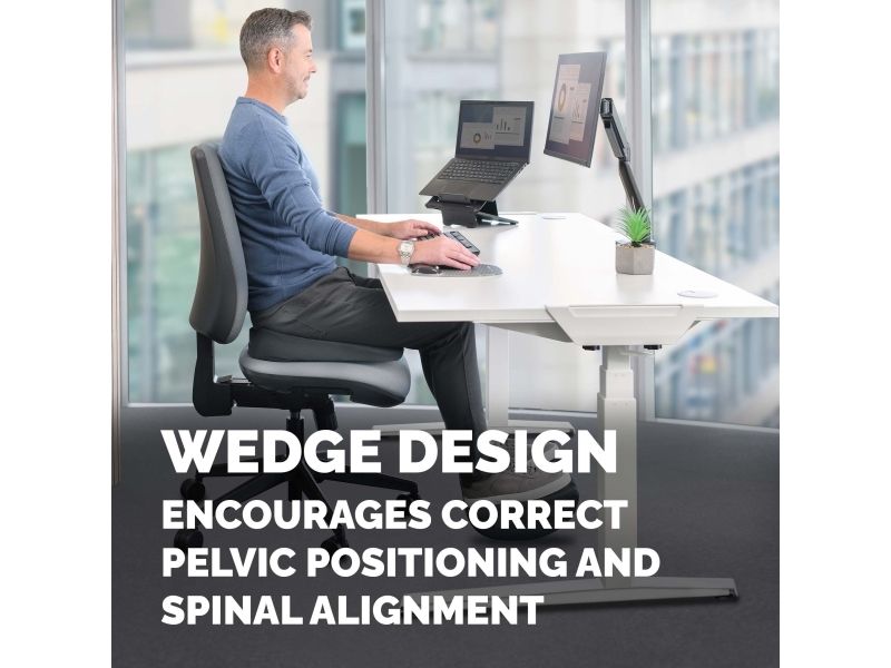 The Fellowes Breyta seat cushion offers comfort for both gaming and office chairs. With a wedge design and coccyx cut-out, this cushion promotes proper posture and reduces pressure on the lower back. The non-slip surface ensures that the cushion stays securely in place during use, providing support for long hours of sitting. Additionally, the carrying handle makes it easy to transport, allowing users to enjoy comfort wherever they go.