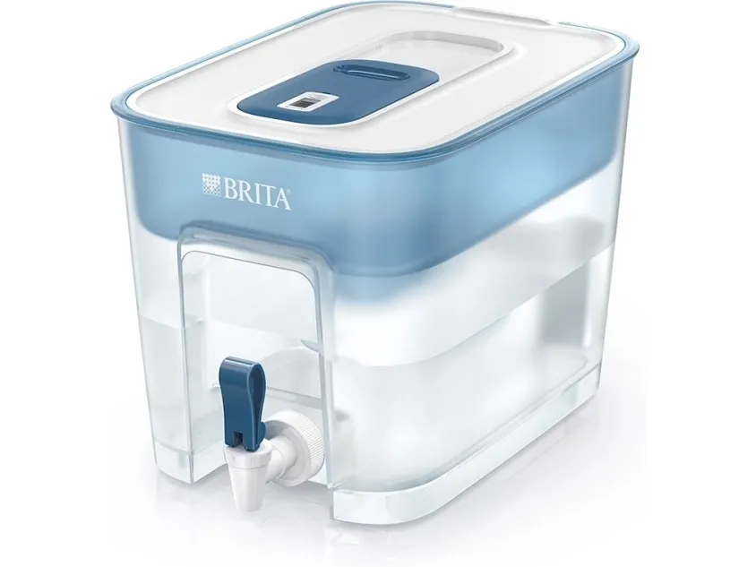 Brita Flow. Water filter type: Dispenser water filter, Product colour: Blue, Transparent, Water tank capacity: 8.2 L. Width: 214 mm, Depth: 304 mm, Height: 220 mm. Quantity per pack: 1 pc(s)
