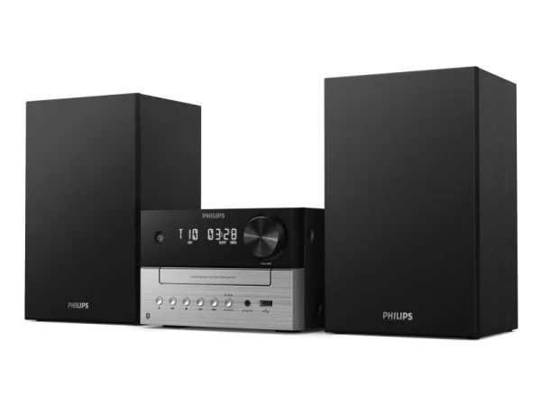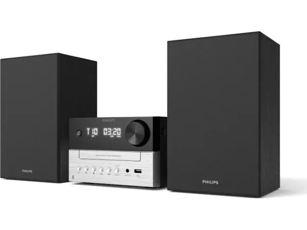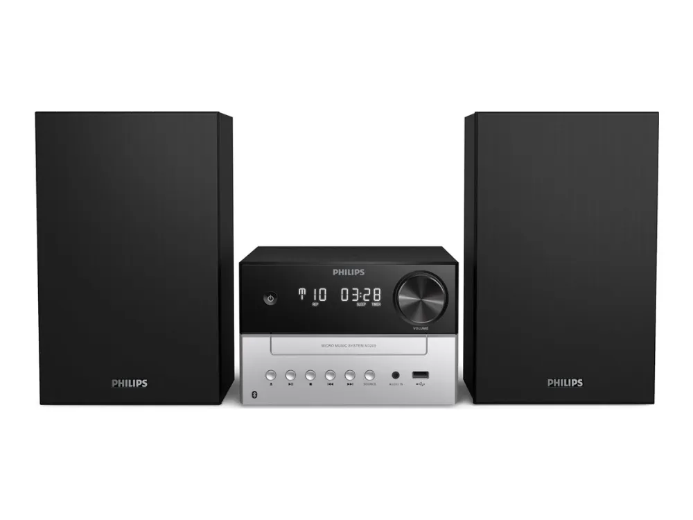 Philips TAM3205M2 mikrosystem ger en engagerande ljudupplevelse med sin robusta toppeffekt på 20 W. Njut av dina favoritljud i stereoläge, oavsett om det är från CD-skivor, digitala format eller via Bluetooth-anslutning. Systemet har en inbyggd USB-laddningsport, så att du enkelt kan ladda dina enheter medan du lyssnar på musik. Det har också en användarvänlig digital klocka med alarm och sömntimer, vilket gör det praktiskt att använda i alla utrymmen. Upplev mångsidigheten med olika uppspelningsalternativ, inklusive radio- och MP3-funktion, som passar ljudentusiaster.