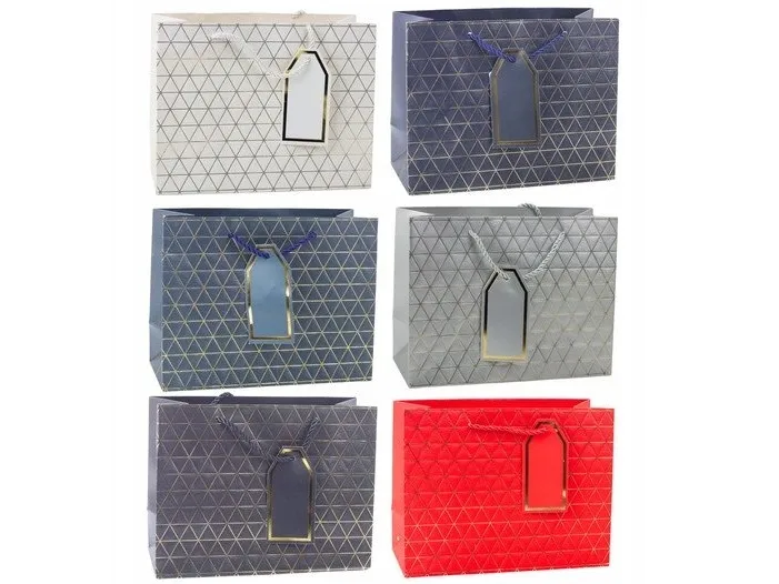 Presentpåse Geometriska linjer i guld 23 x 18 x 10 cm